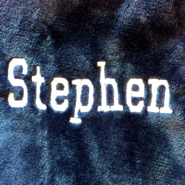 The name is embroidered on the front left of the batrobe.