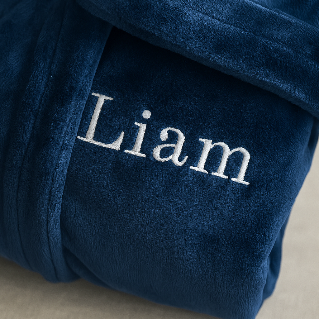 Treat your recipient to luxury with our personalised bathrobes. Embroidered with your recipient's name on the front left breast with rich white viscose thread.
