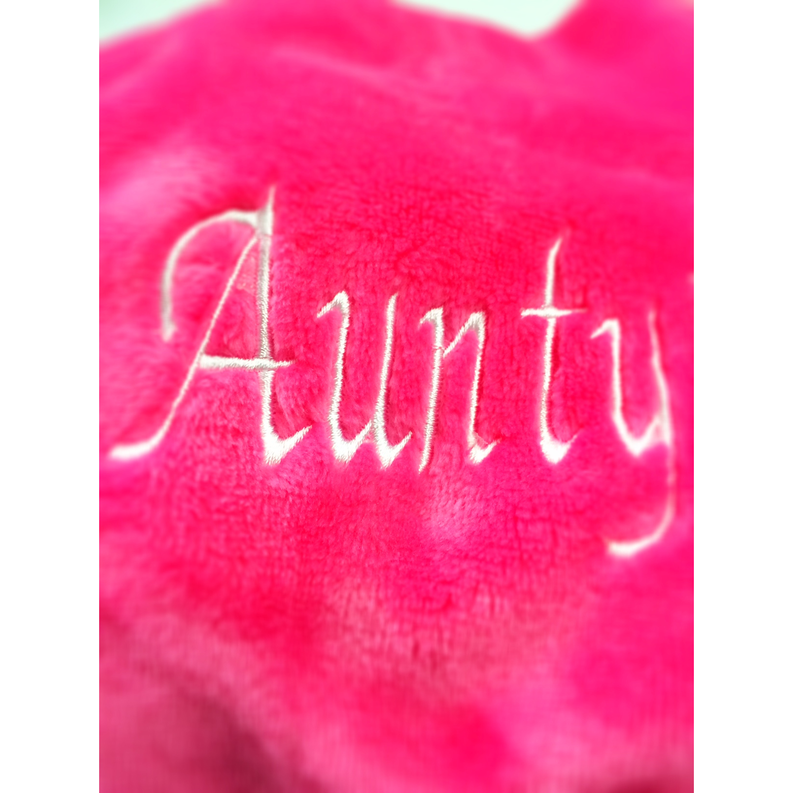 The name is embroidered on the front left of the bathrobe. **Please note that only letters can be embroidered, NO emojis or symbols.