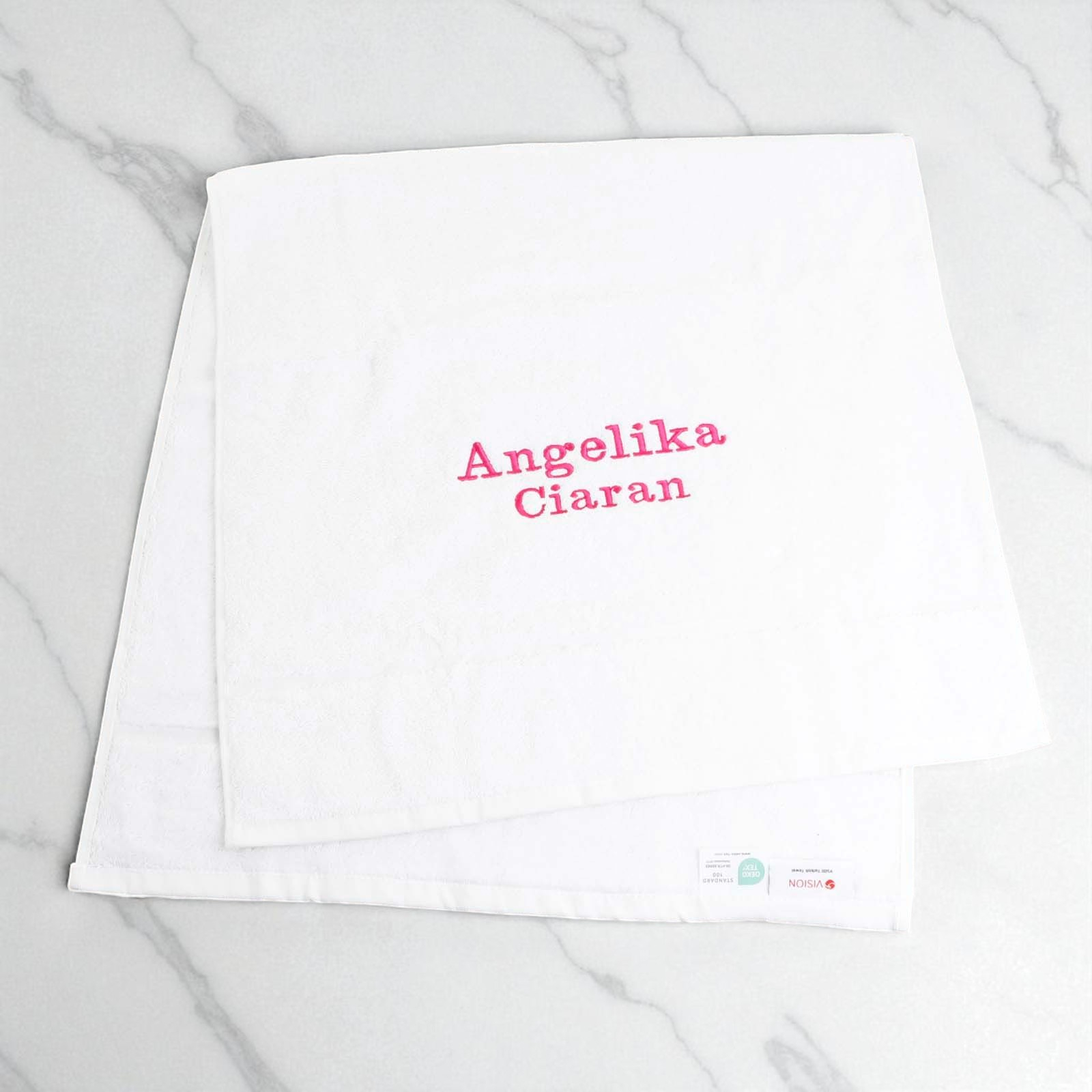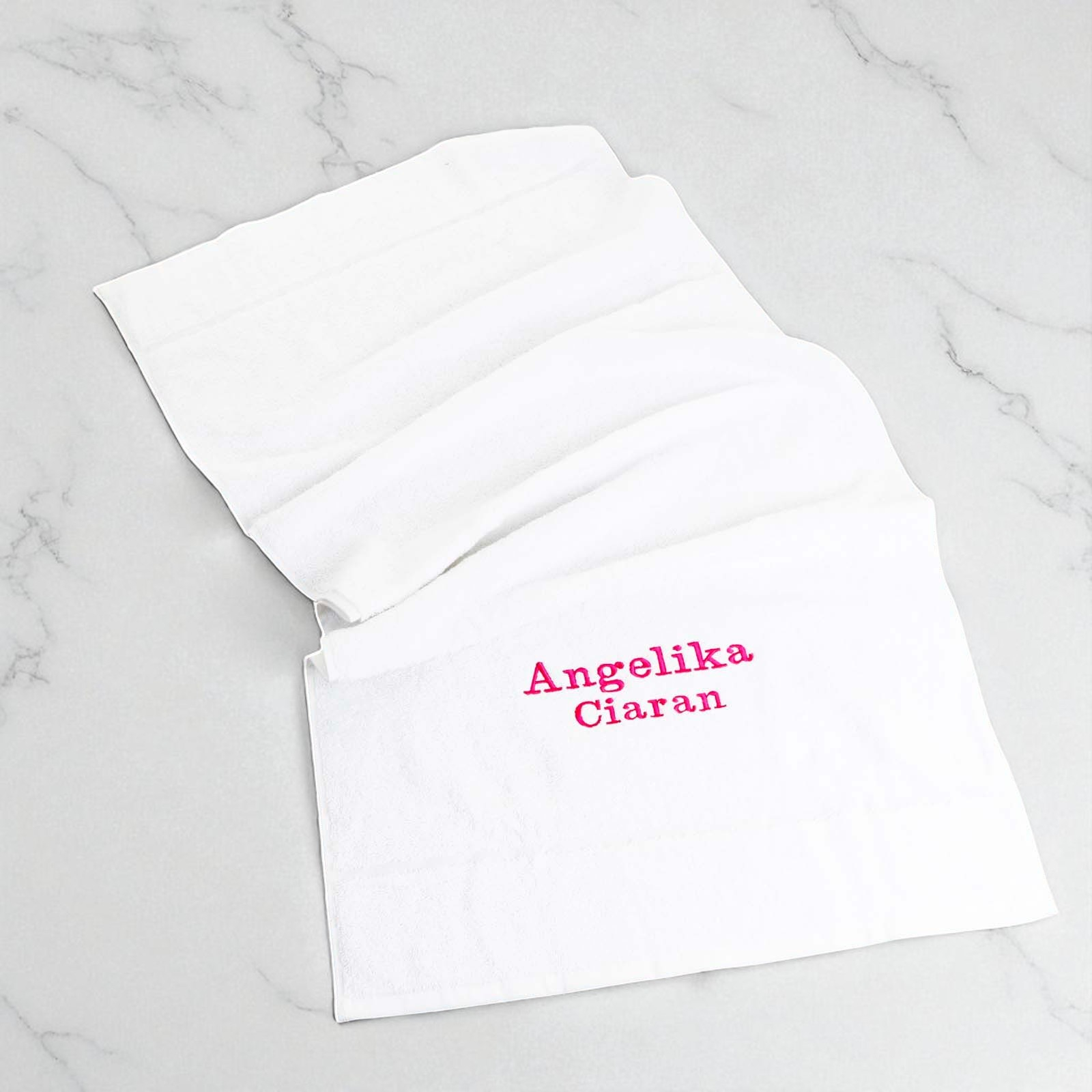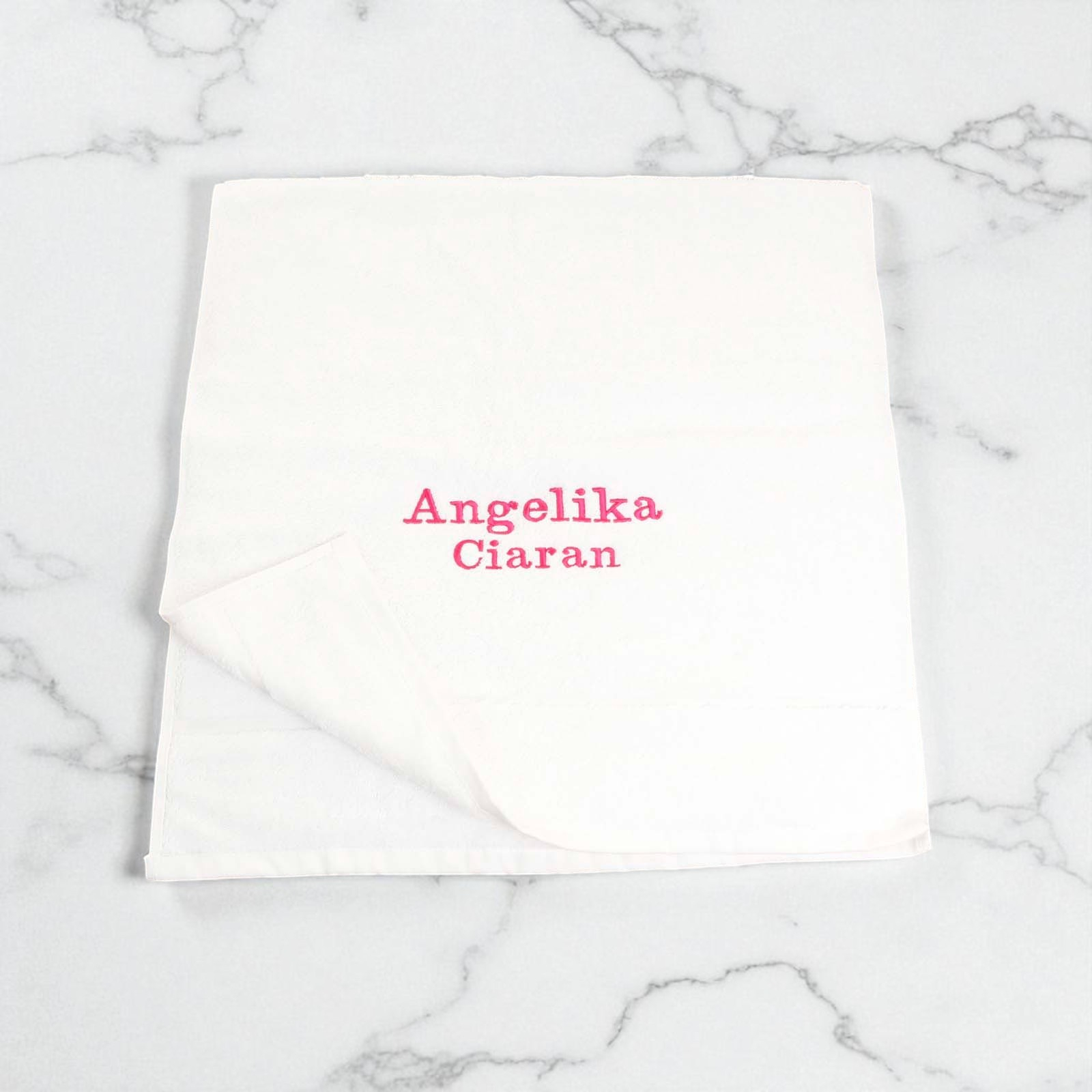 Luxury white 400gsm Hand Towel with rich vibrant stitching.