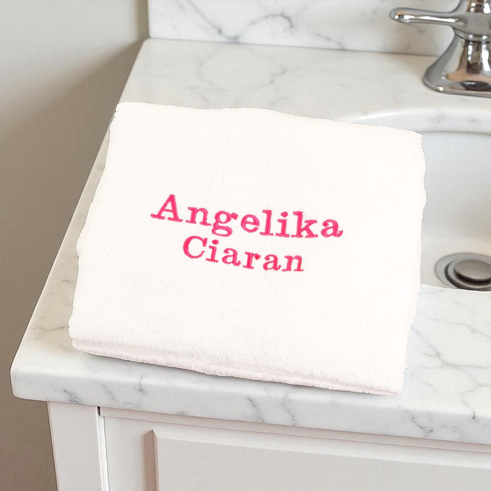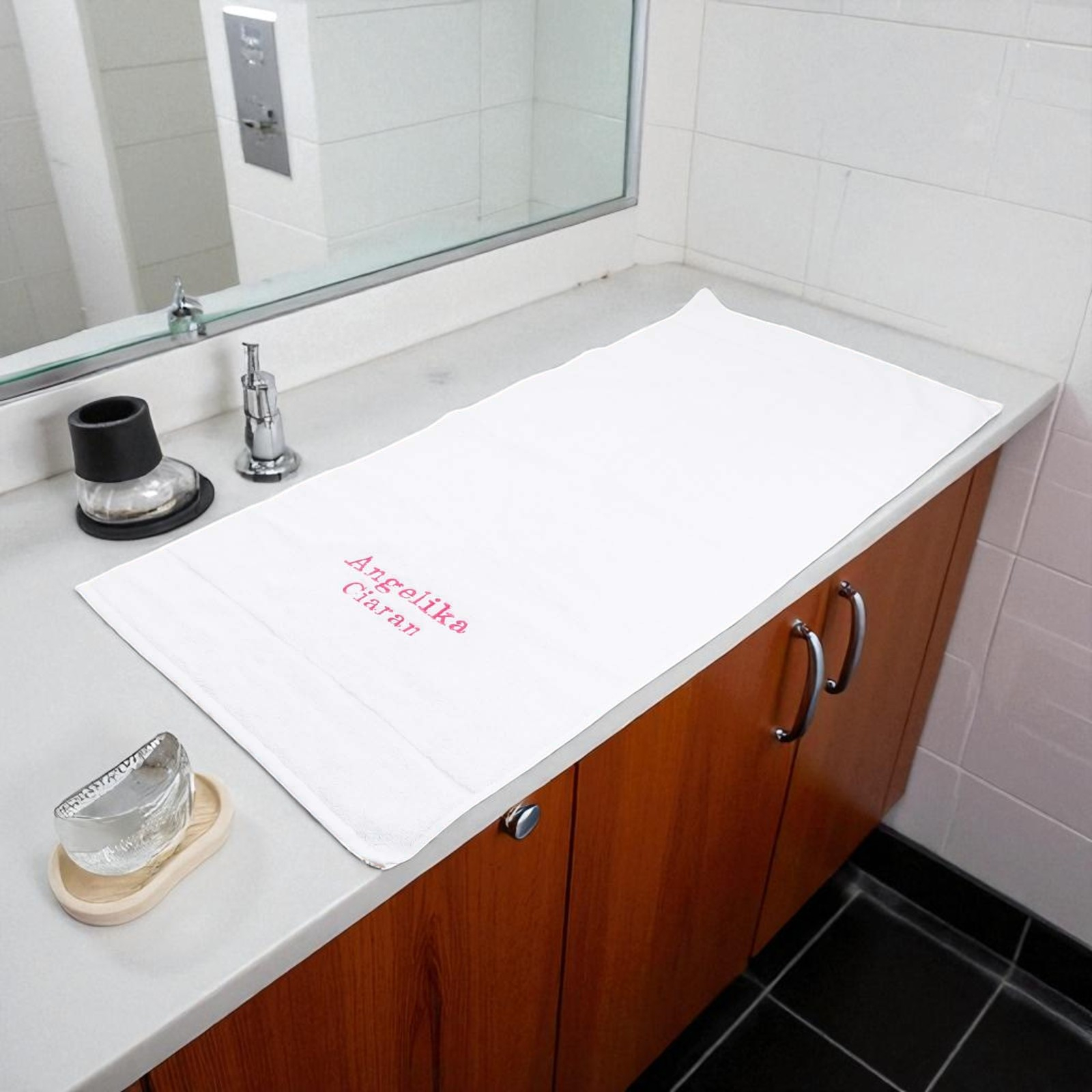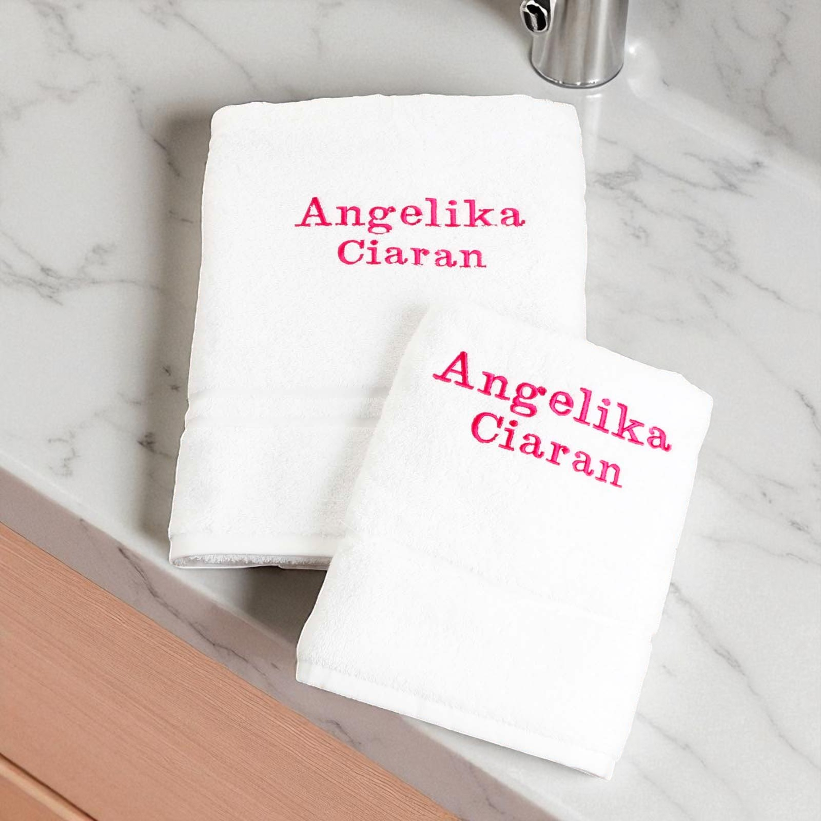 Luxury white 400gsm Hand Towel with rich vibrant stitching.