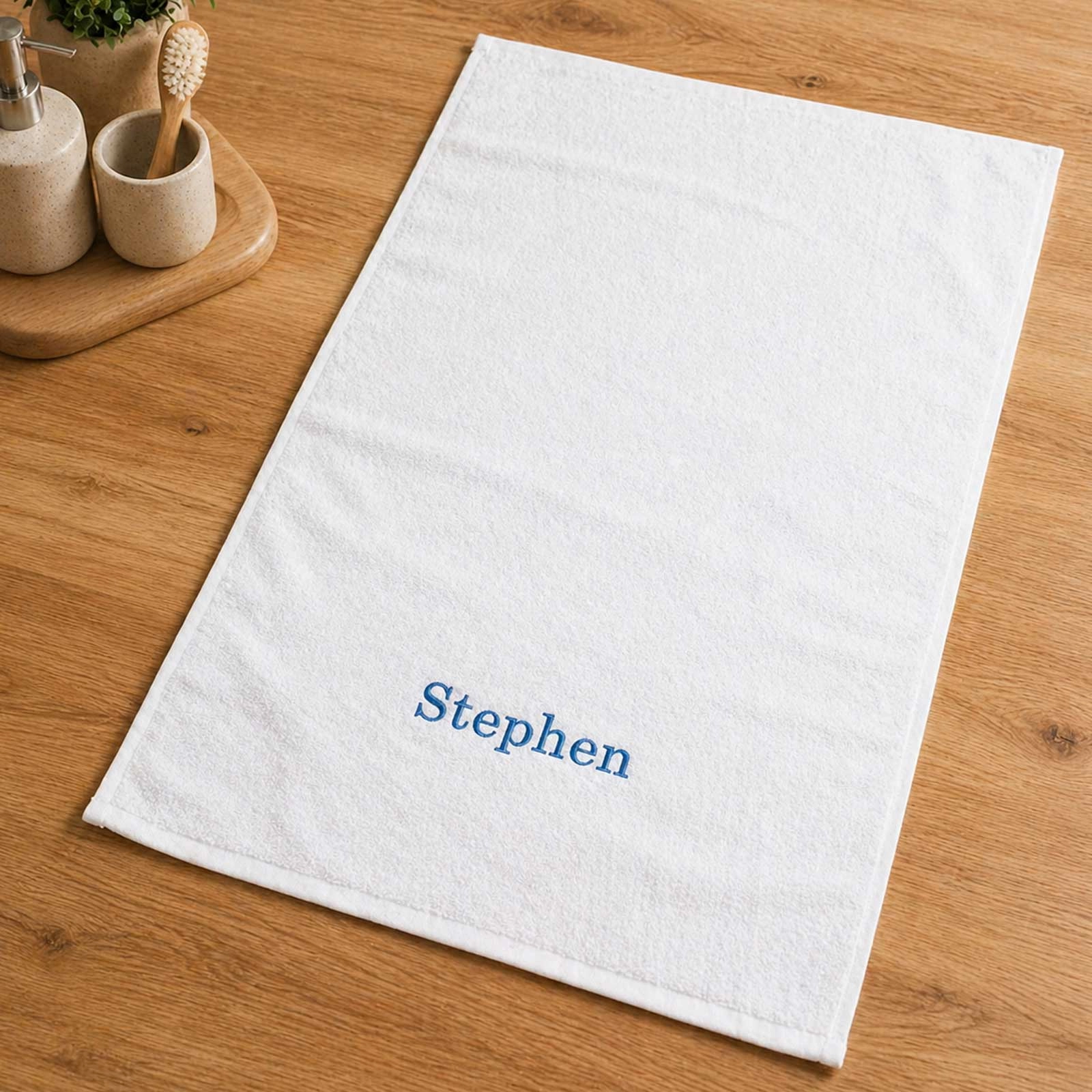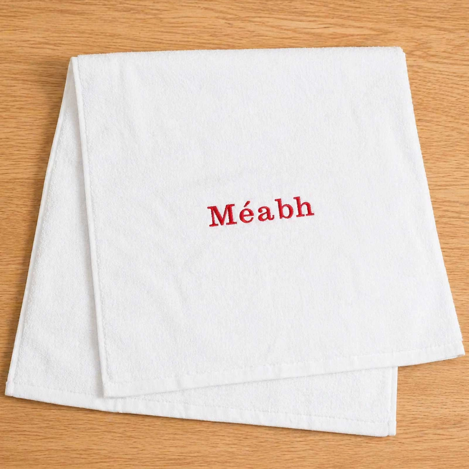 Luxury white 400gsm Hand Towel with rich vibrant stitching.