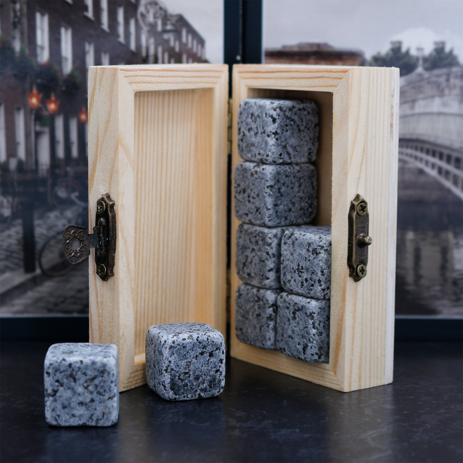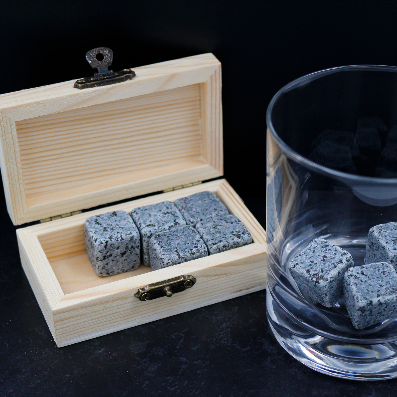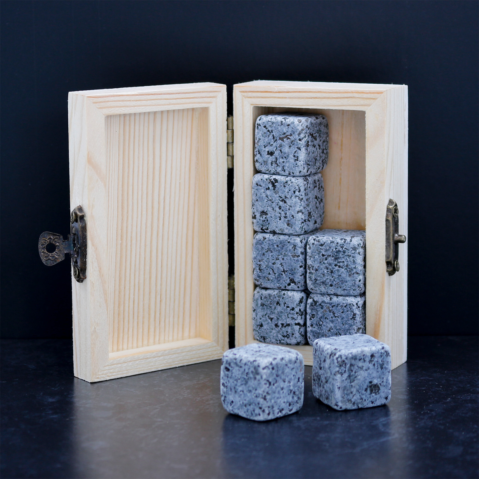 Wooden boxed Whiskey set comprising of 8 stones.