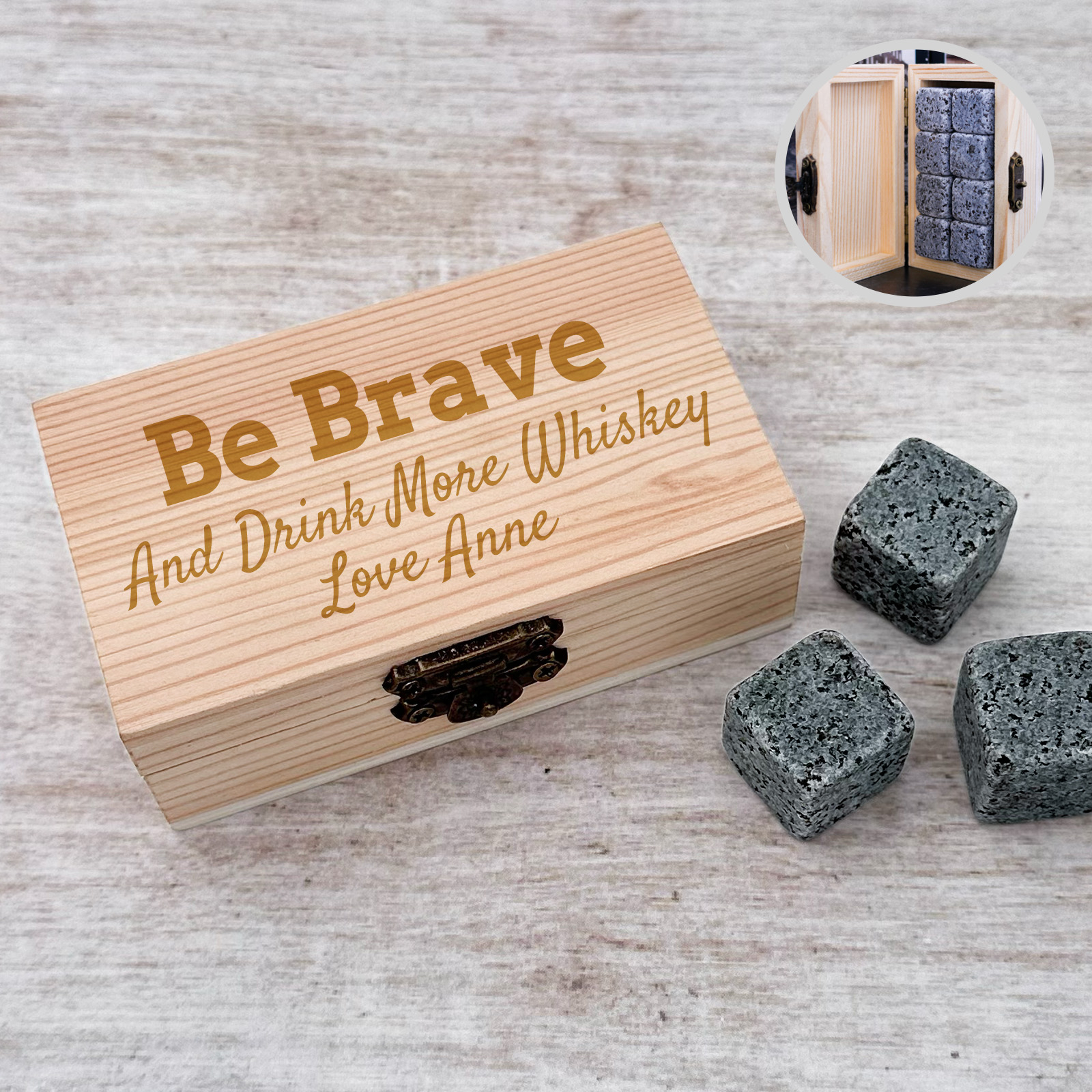 These stones chill your drink without altering its flavour. The beautifully designed box can be customised with Any Name and Message, making it a perfect gift for Christmas, Father's Day, Valentine's Day, Birthdays, Weddings, Anniversaries, promotions, graduation, etc.