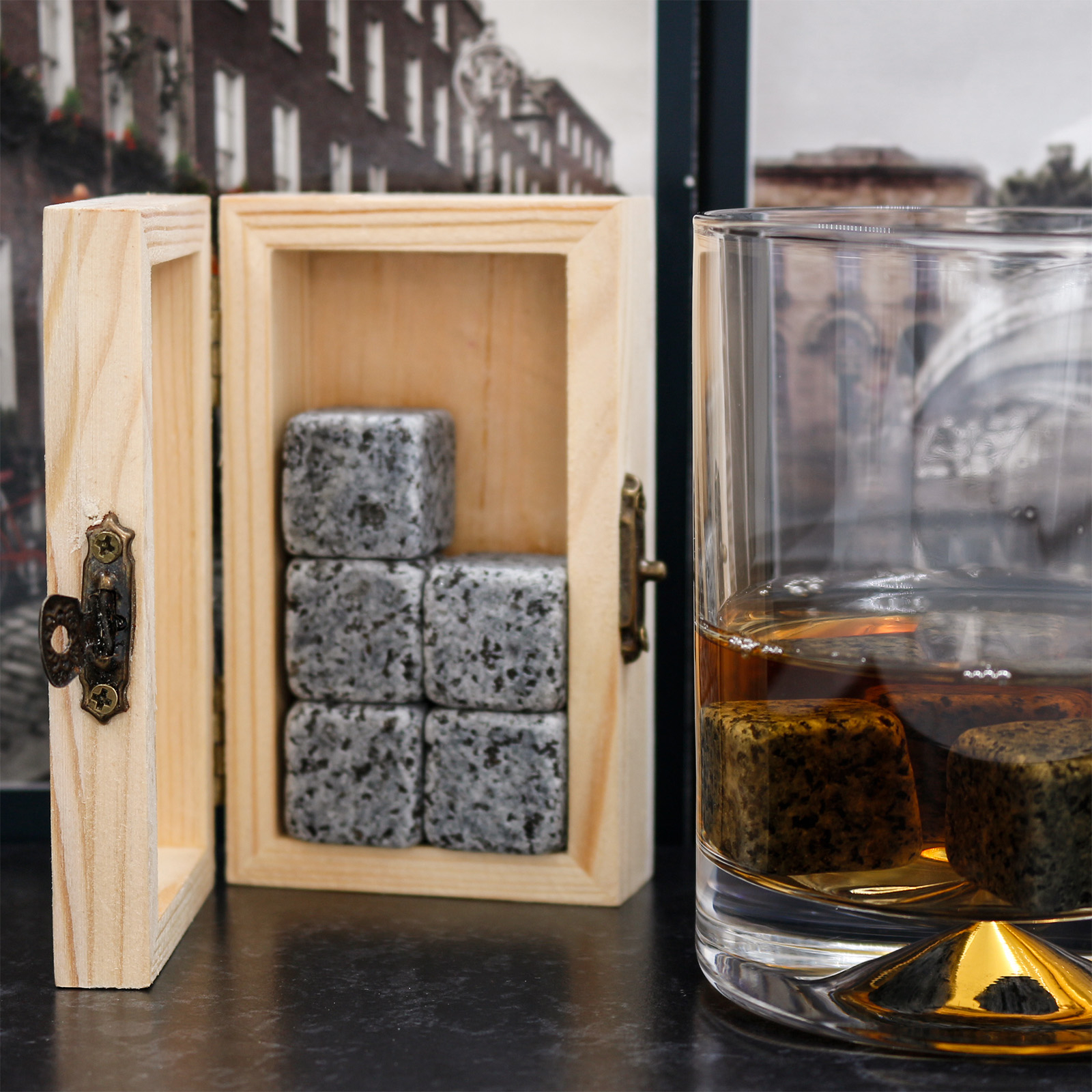 Wooden boxed Whiskey set comprising of 8 stones.