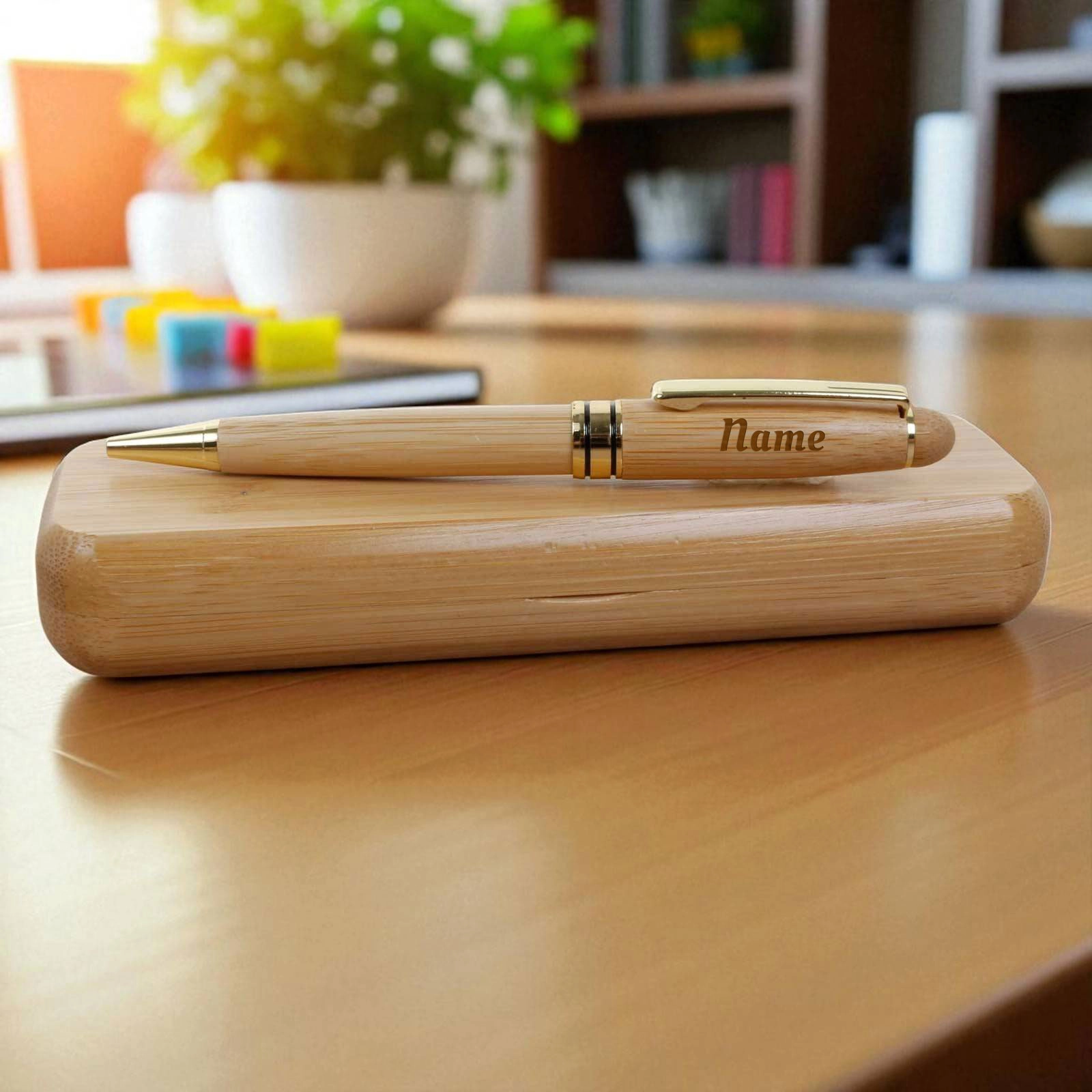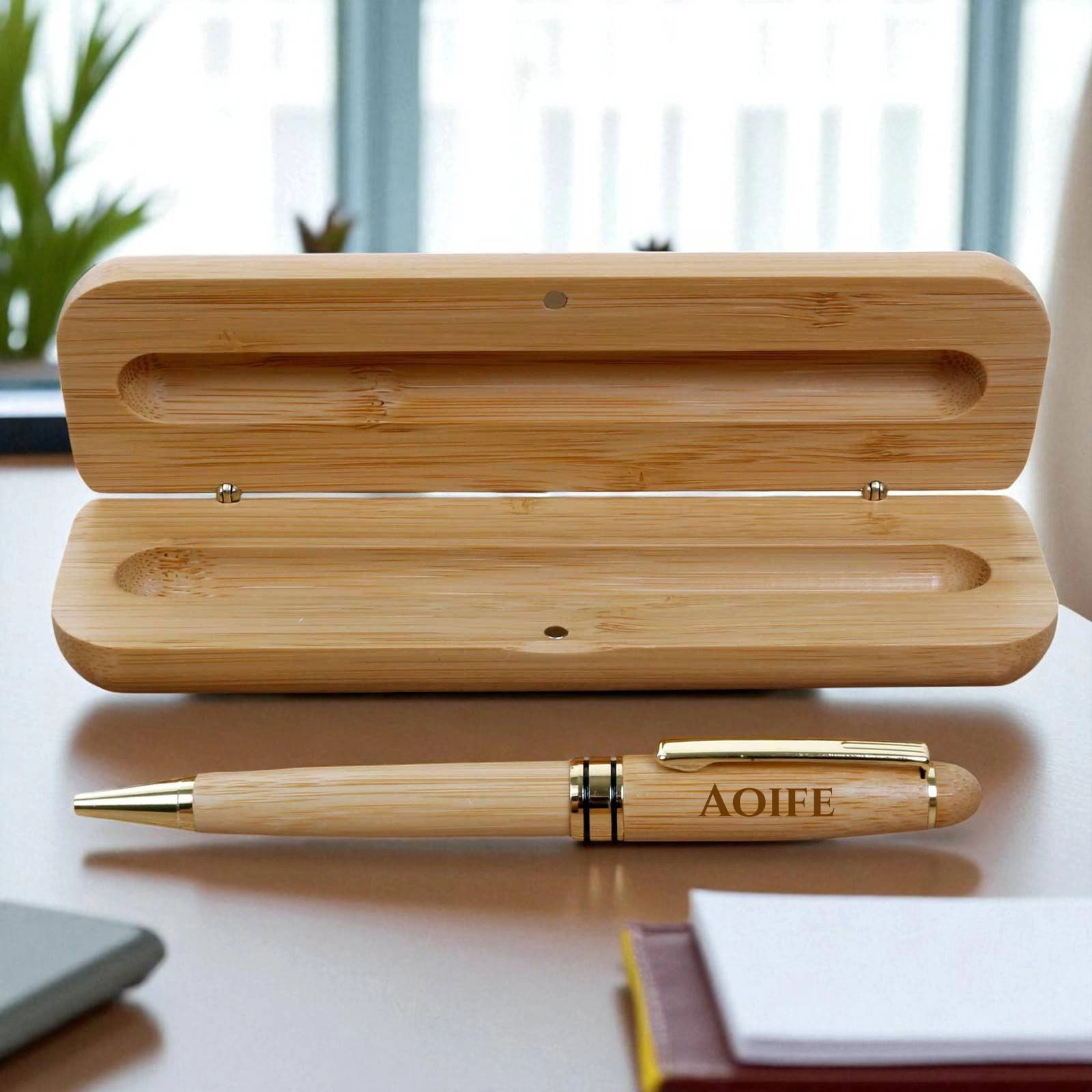 Housed in a matching bamboo case, each pen can be engraved with a name, message, or logo, making it an ideal gift for graduations, promotions, corporate events, or special milestones. Whether for a colleague, friend, or loved one, this unique set combines functionality with heartfelt sentiment.
