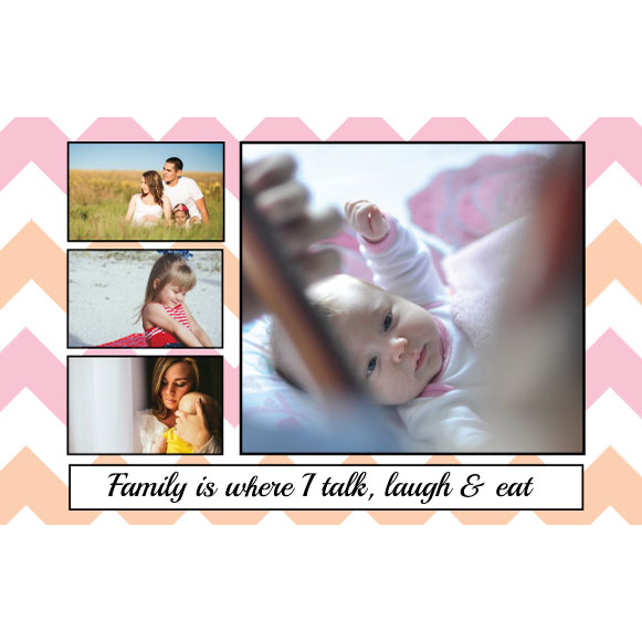 A family photograph collection against a zig-zagged background is a stylish way to celebrate any occasion.