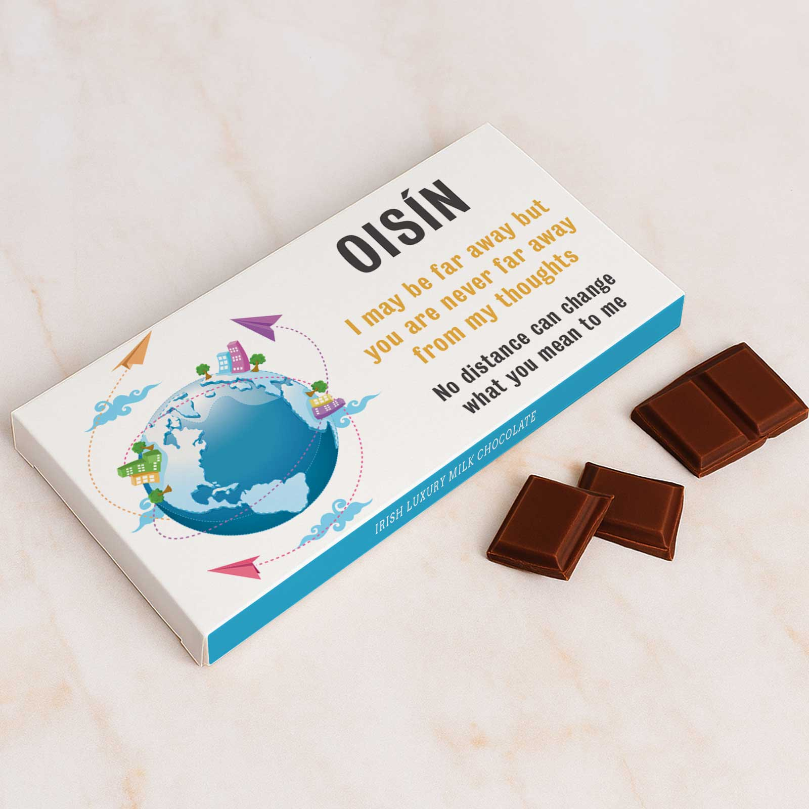 Far Away Thinking Of You Personalised Chocolate Bar 90g – the perfect gift to show someone special that no matter the distance, they are always close to your heart.