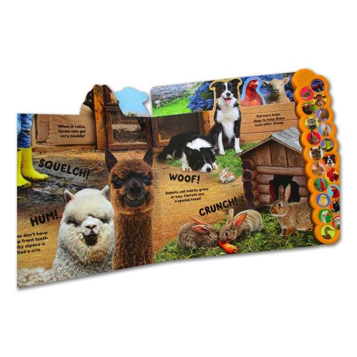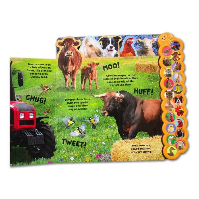 Perfect for curious little minds, the Farm - 20 Sounds & Fun Facts Board Book brings the countryside to life with vibrant images of farm animals and immersive sound effects. Children will love pressing the easy-to-use shaped tabs to hear 20 authentic farm sounds—from the cheerful cluck of a chicken to the hearty moo of a cow.