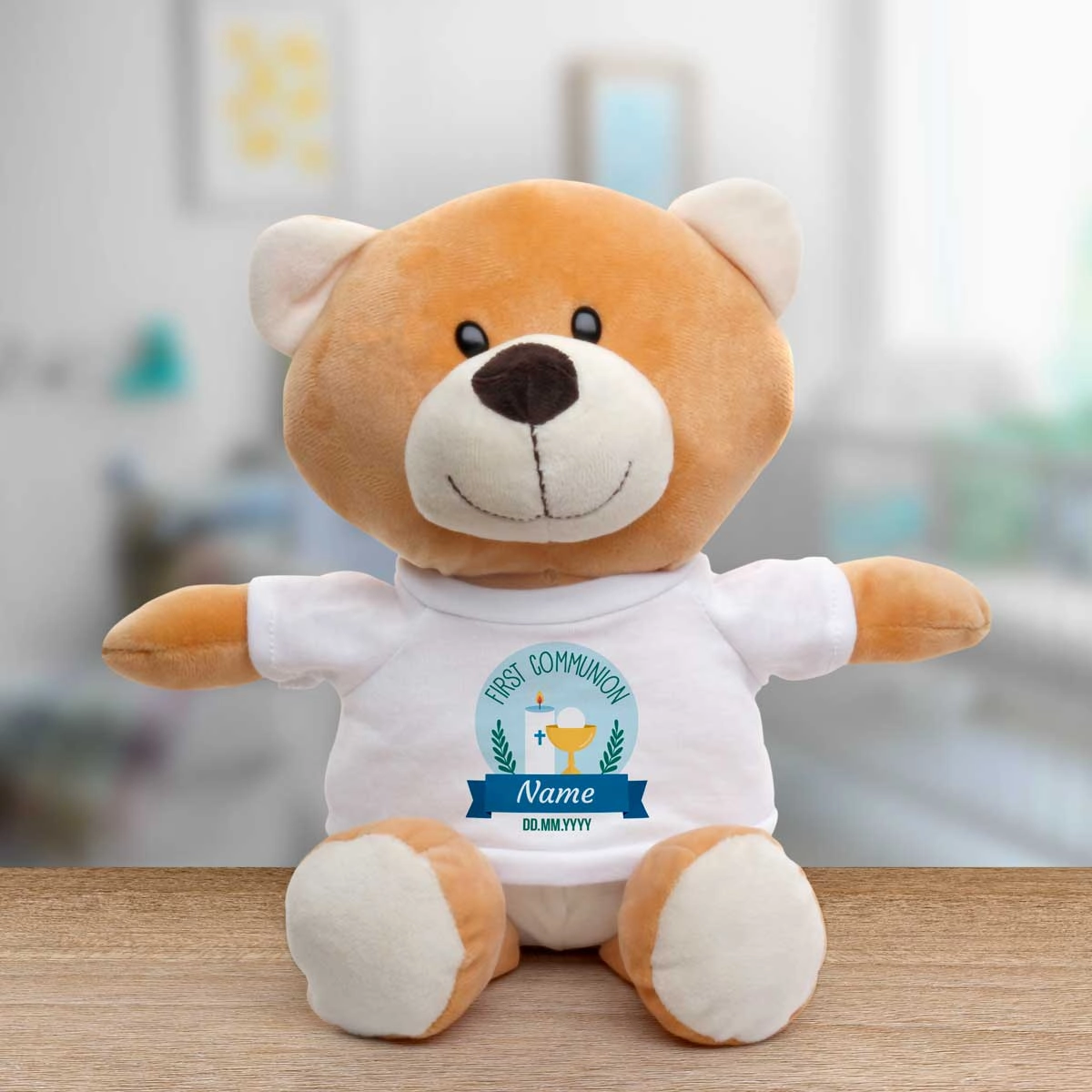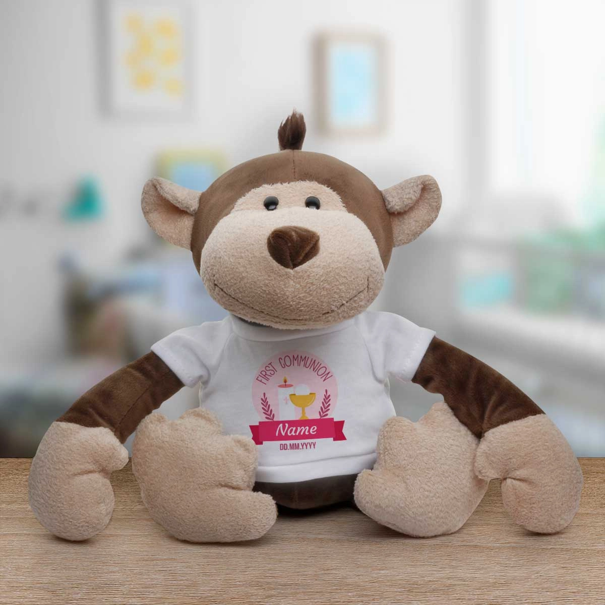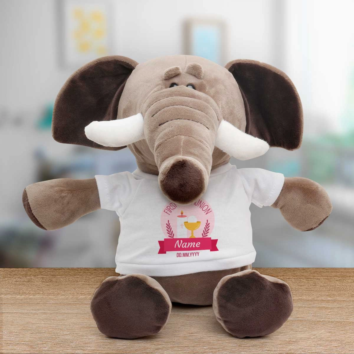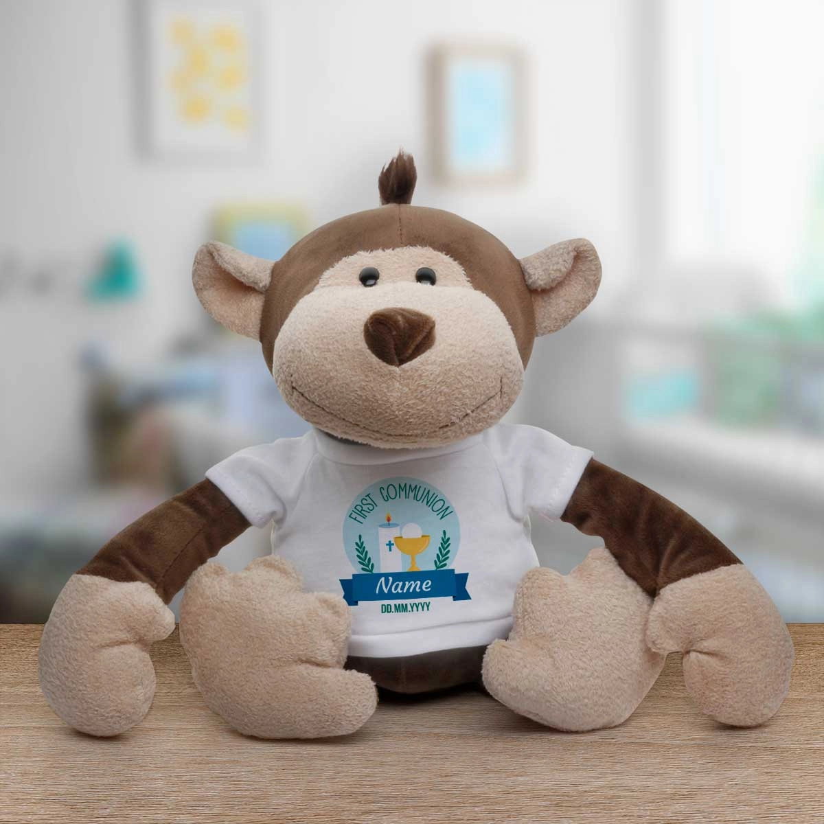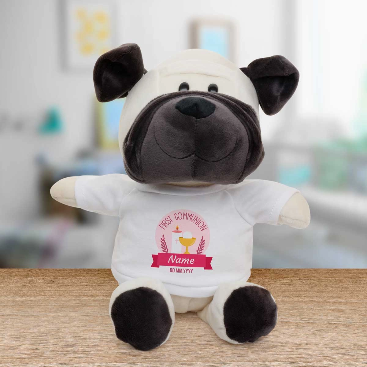 The animal's t-shirt is personalised to include your special message.