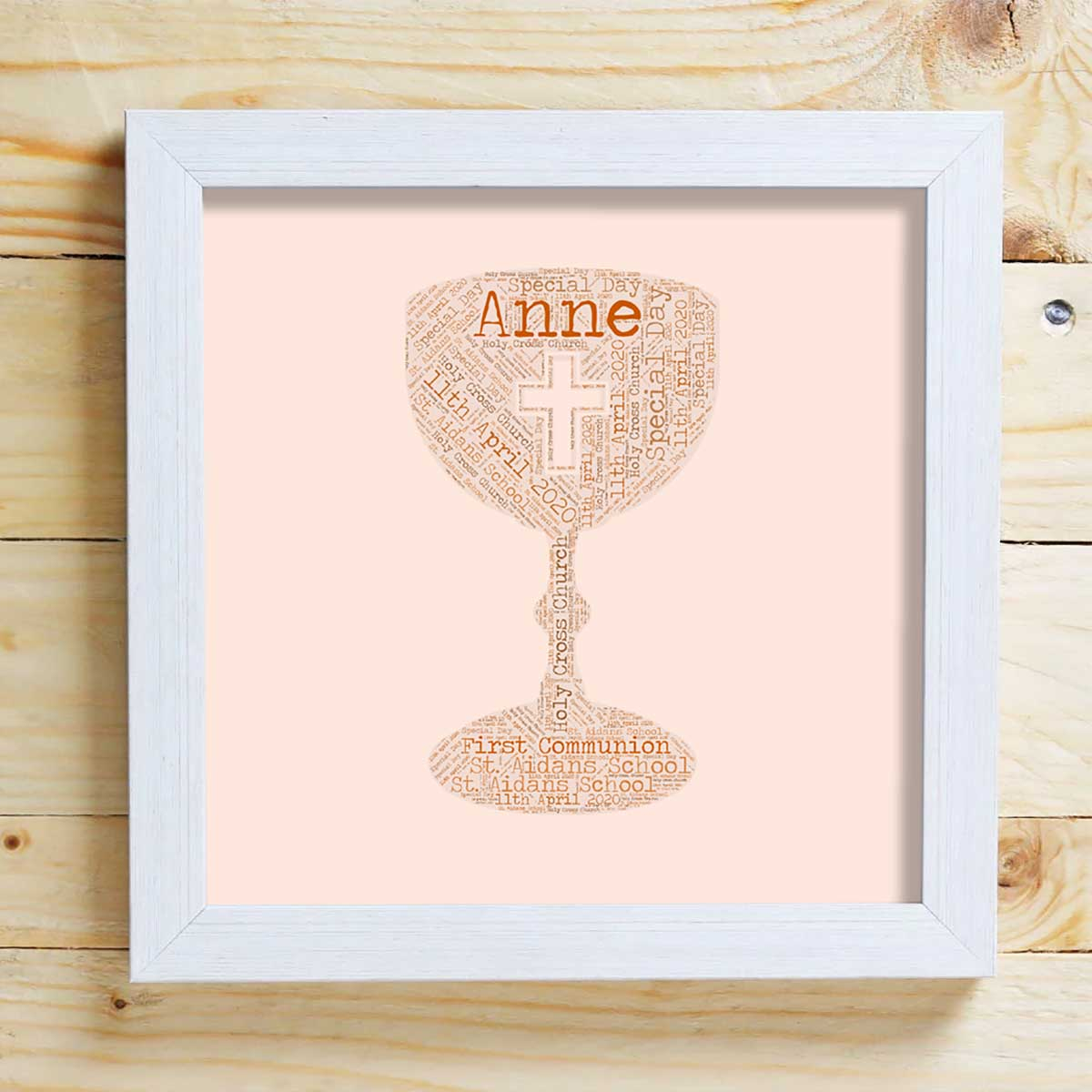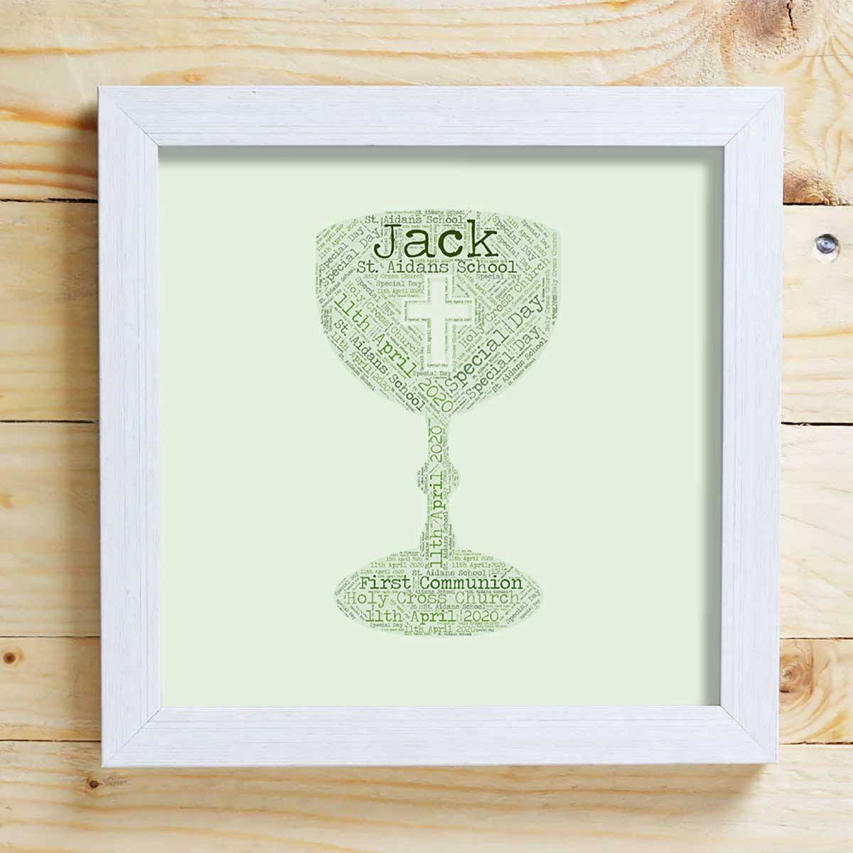 This personalised Chalice Word Cloud Box Frame makes a beautiful First Communion keepsake gift.