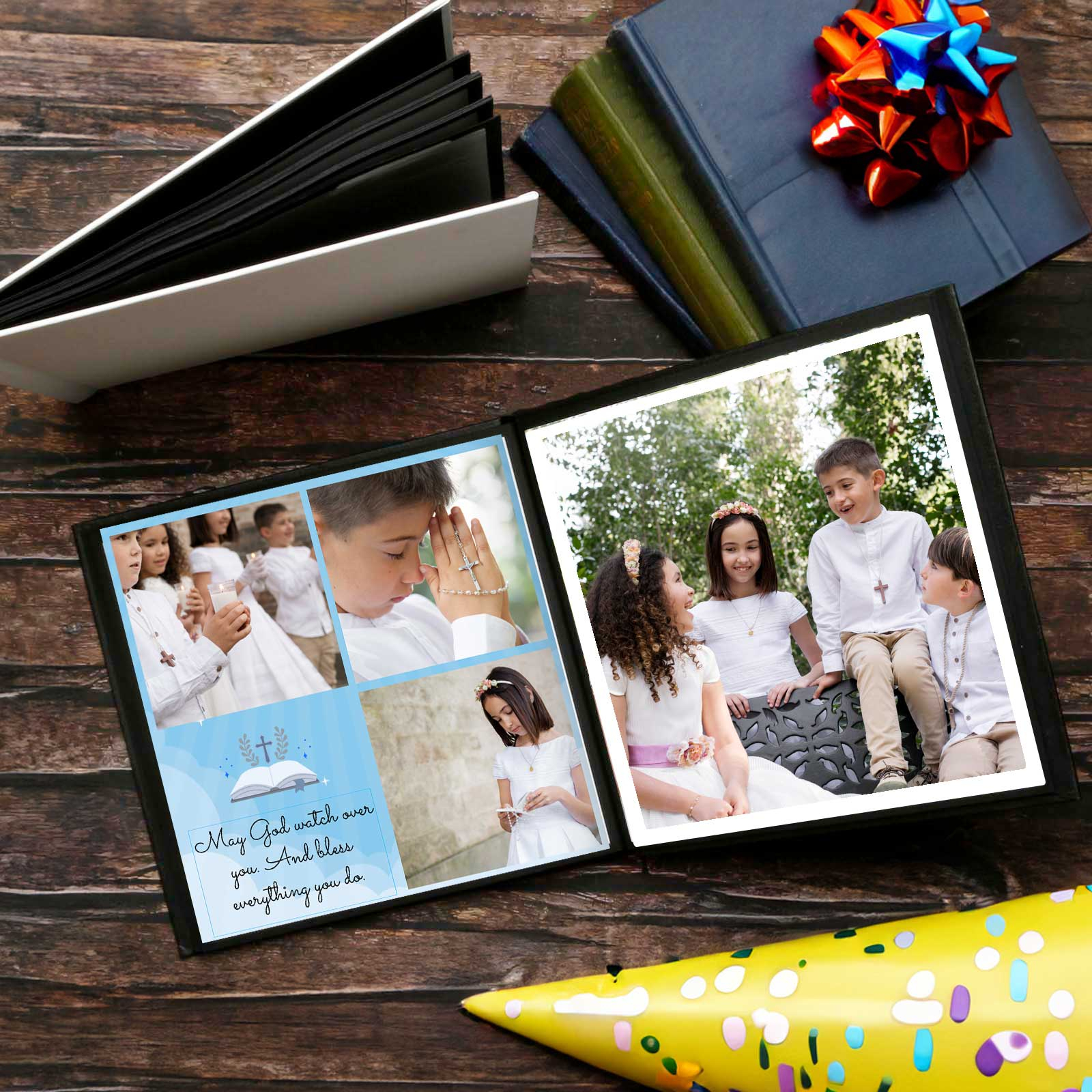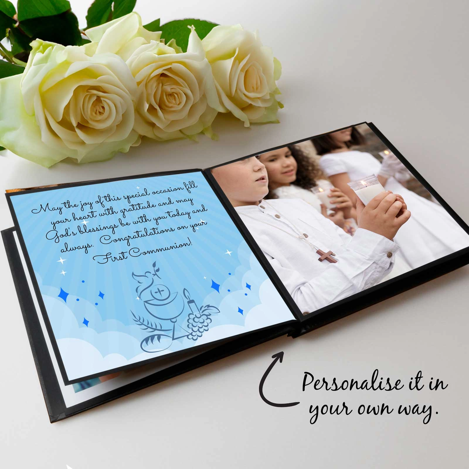 Create your own Photo Book, the perfect gift for your recipient to look back on the child's First Holy Communion! Whether the parents, grandparents or extended family, your recipients will truly cherish this wonderful keepsake gift. Preserve your cherished moments in this unique and captivating hardcover Photo Book - these memories last a lifetime!