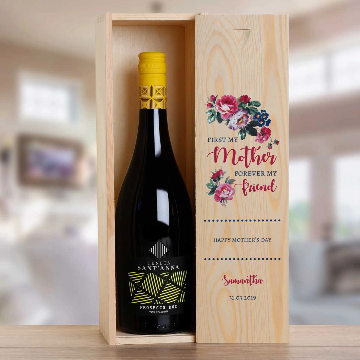 First My Mother Forever My Friend Personalised Wooden Single Wine Box