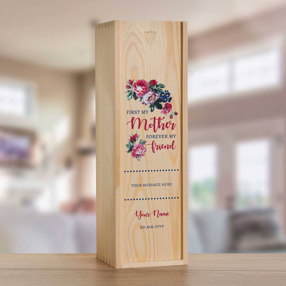 First My Mother Forever My Friend Personalised Wooden Single Wine Box