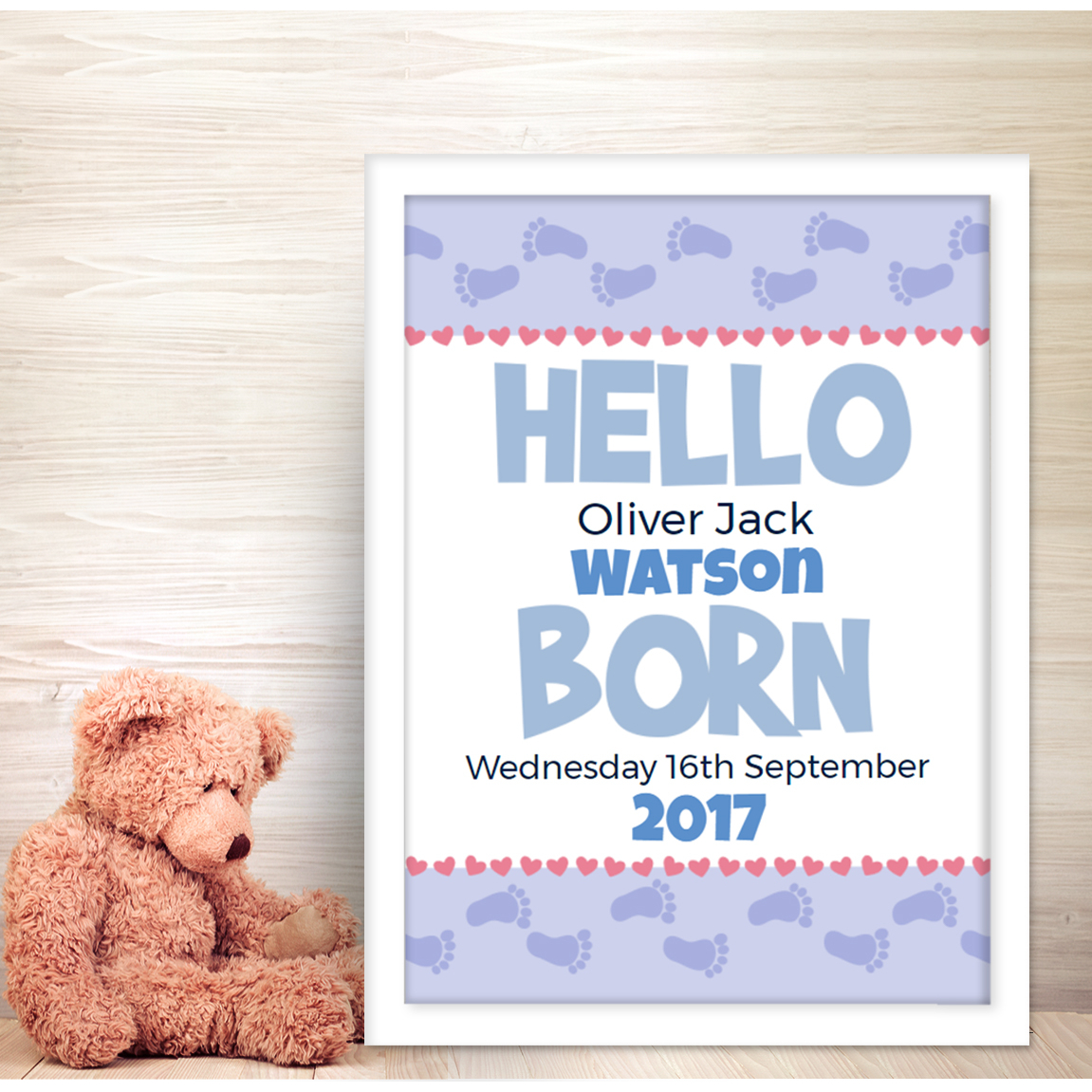 A beautiful gift for any new baby that will look fantastic in their nursury! The print contains Baby's date of birth, full name, time of birth, weight and place of birth.