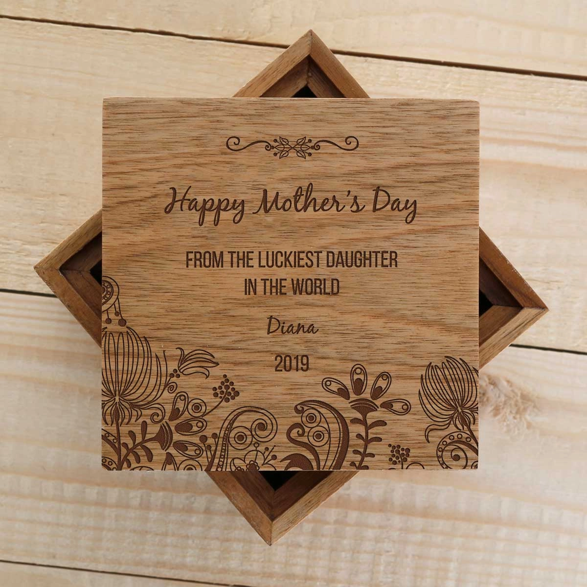 Four-Sided Photo Keepsake Box - Personalised Happy Mothers Day Flowers