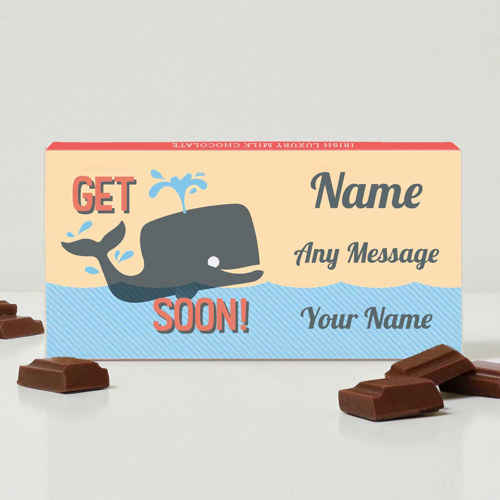 This charming 90g milk chocolate bar features a delightful whale design and a heartfelt “Get Whale Soon!” message, personalised with your recipient’s name and your own special message. It’s the perfect way to send warm wishes and encouragement to anyone needing a little pick-me-up.