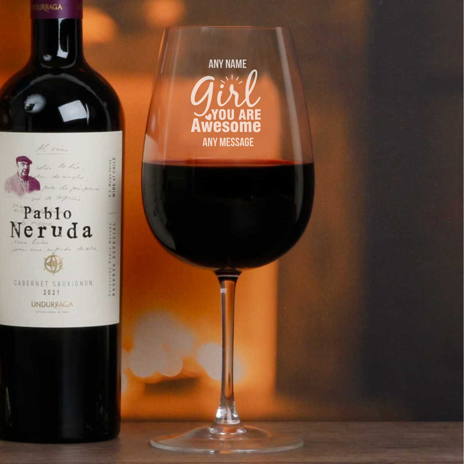 A personalised wine glass that says;