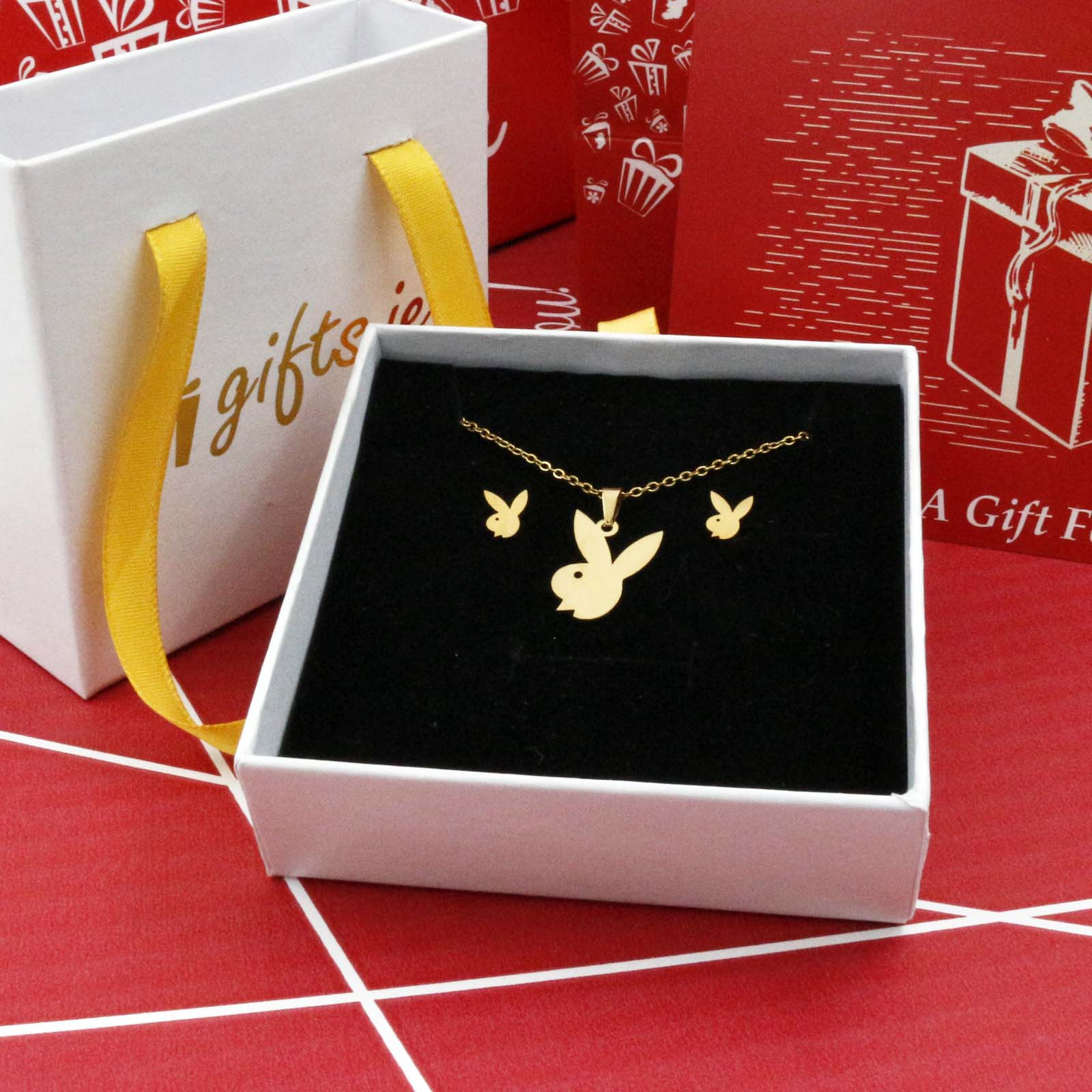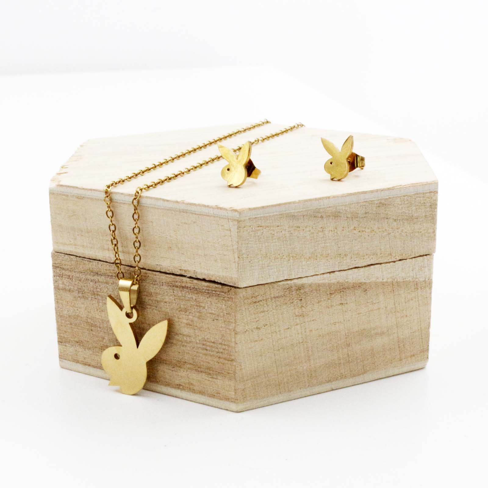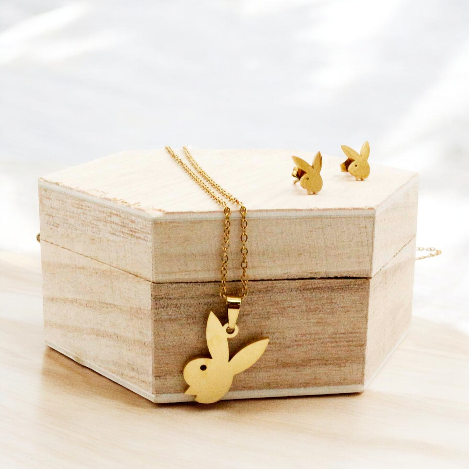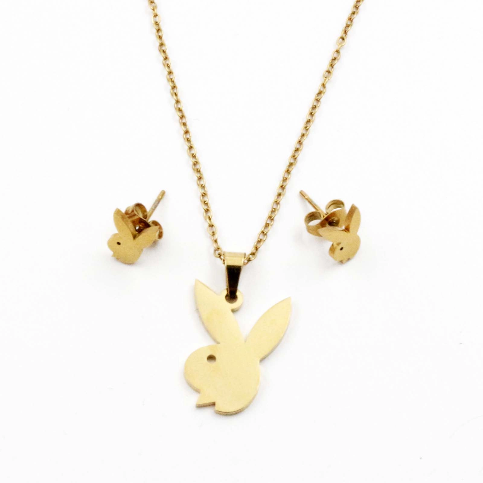 Gold Bunny Necklace and Earrings