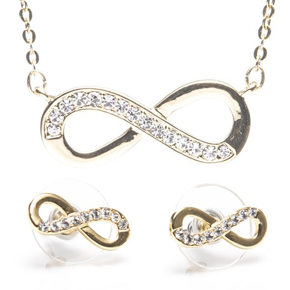 This gold infinity necklace and matching earring set comes beautifully presented in its own stunning gift box.