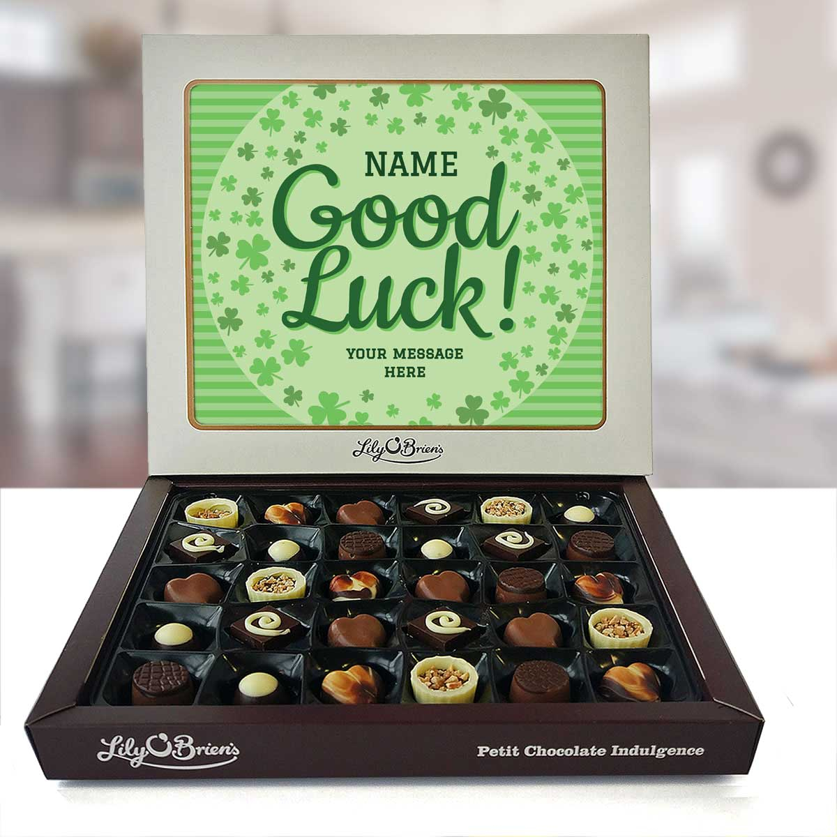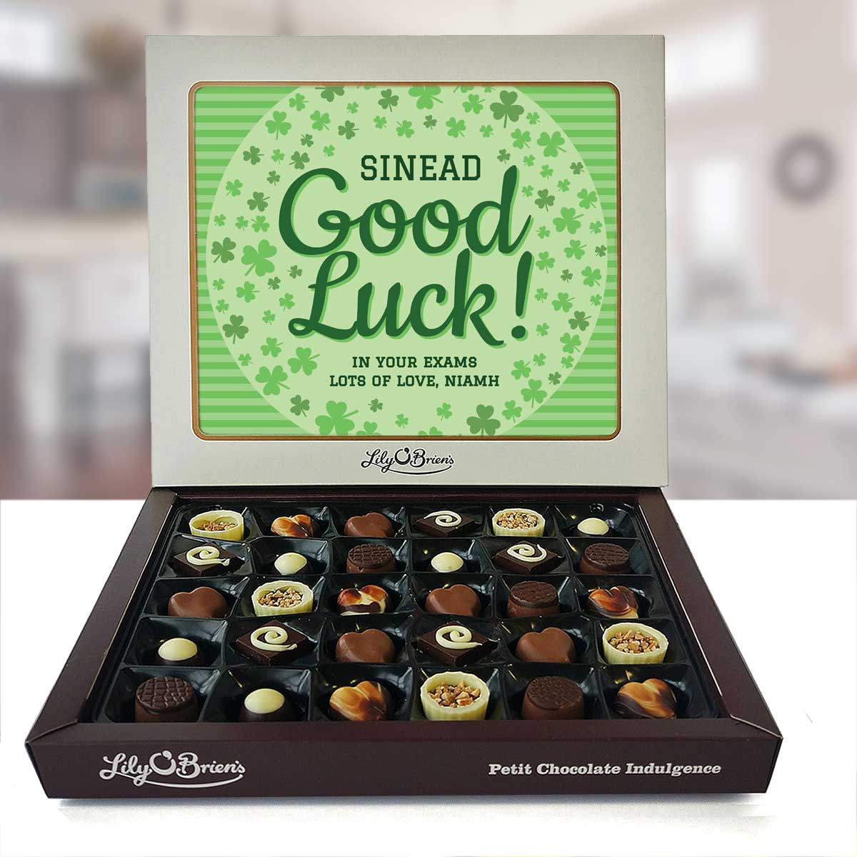 This Personalised Chocolate Box is filled with the Lily O'Brien's Luxury Chocolate collection. Approximate box dimensions: 290mm x 240mm x 40mm.