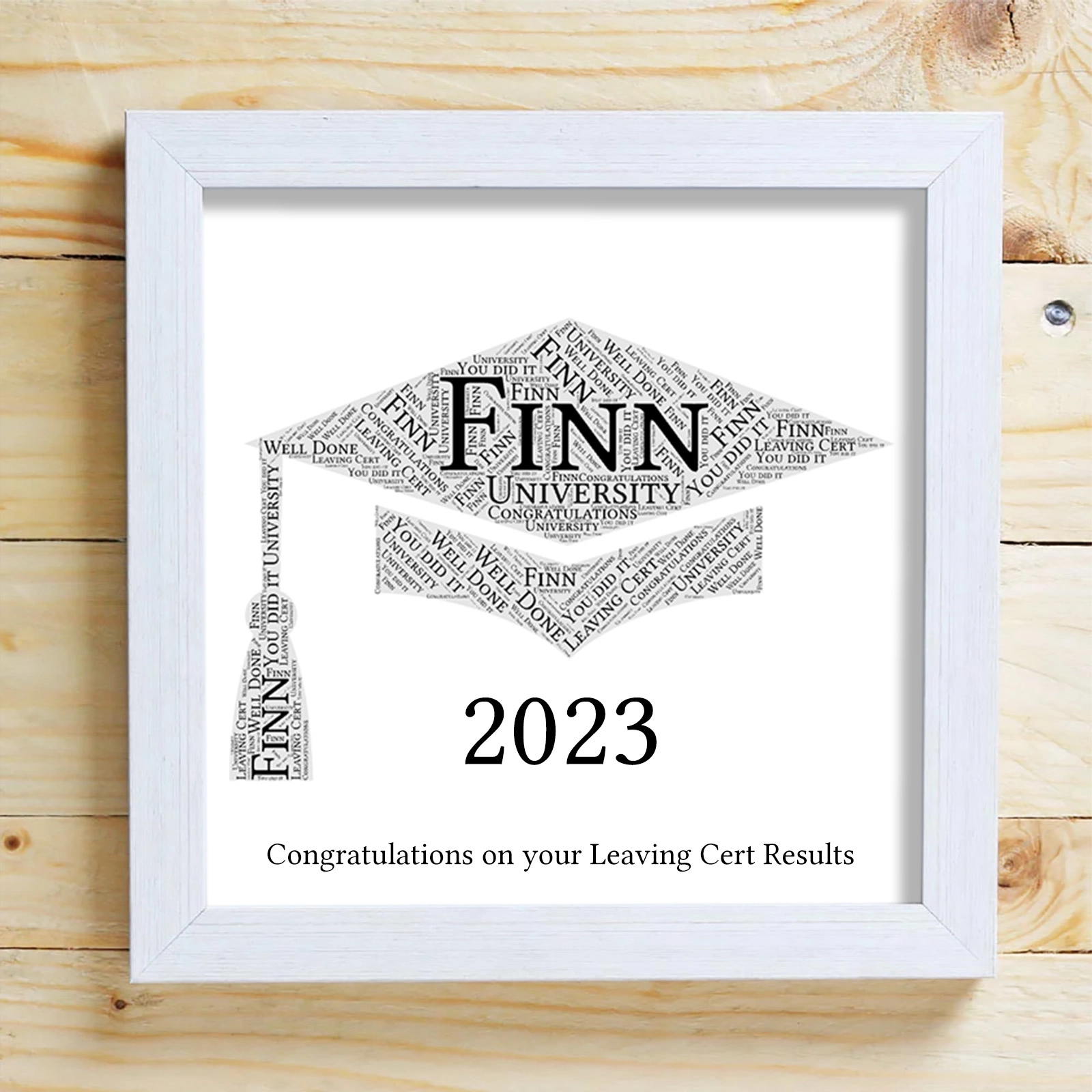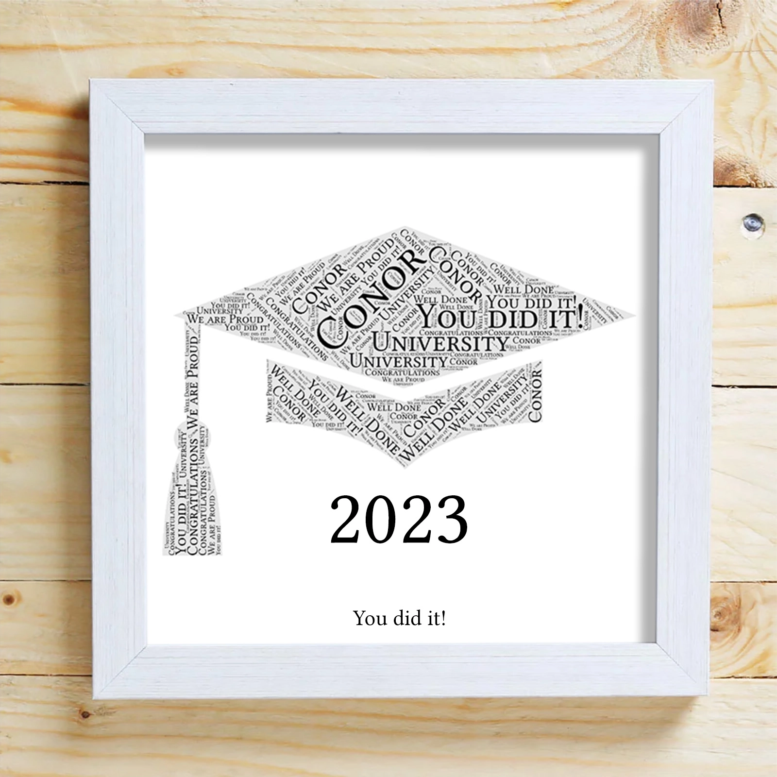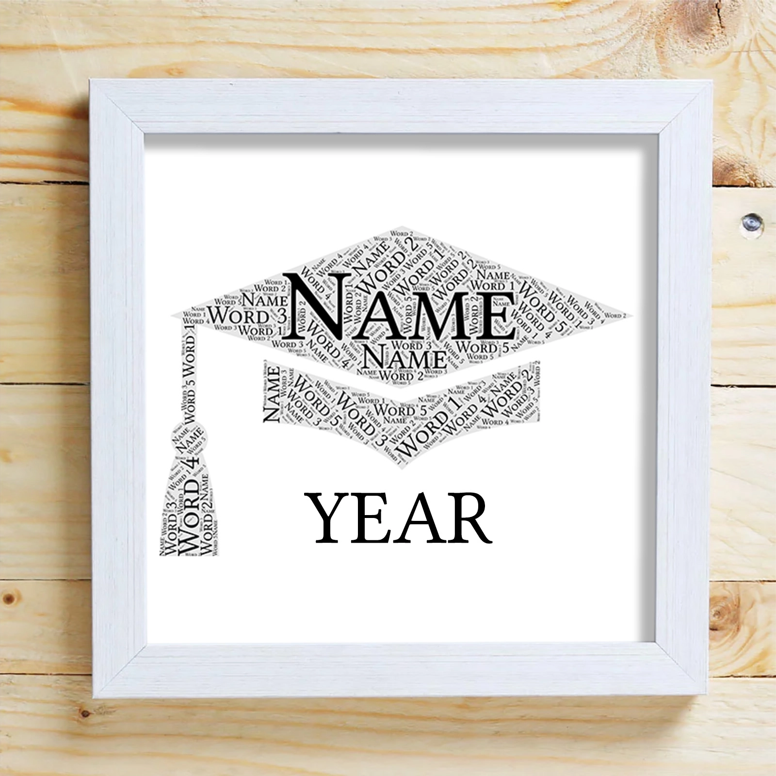 We will create a unique word cloud and frame as illustrated.Adding a date or personal message will make a great treasured gift for years to come.