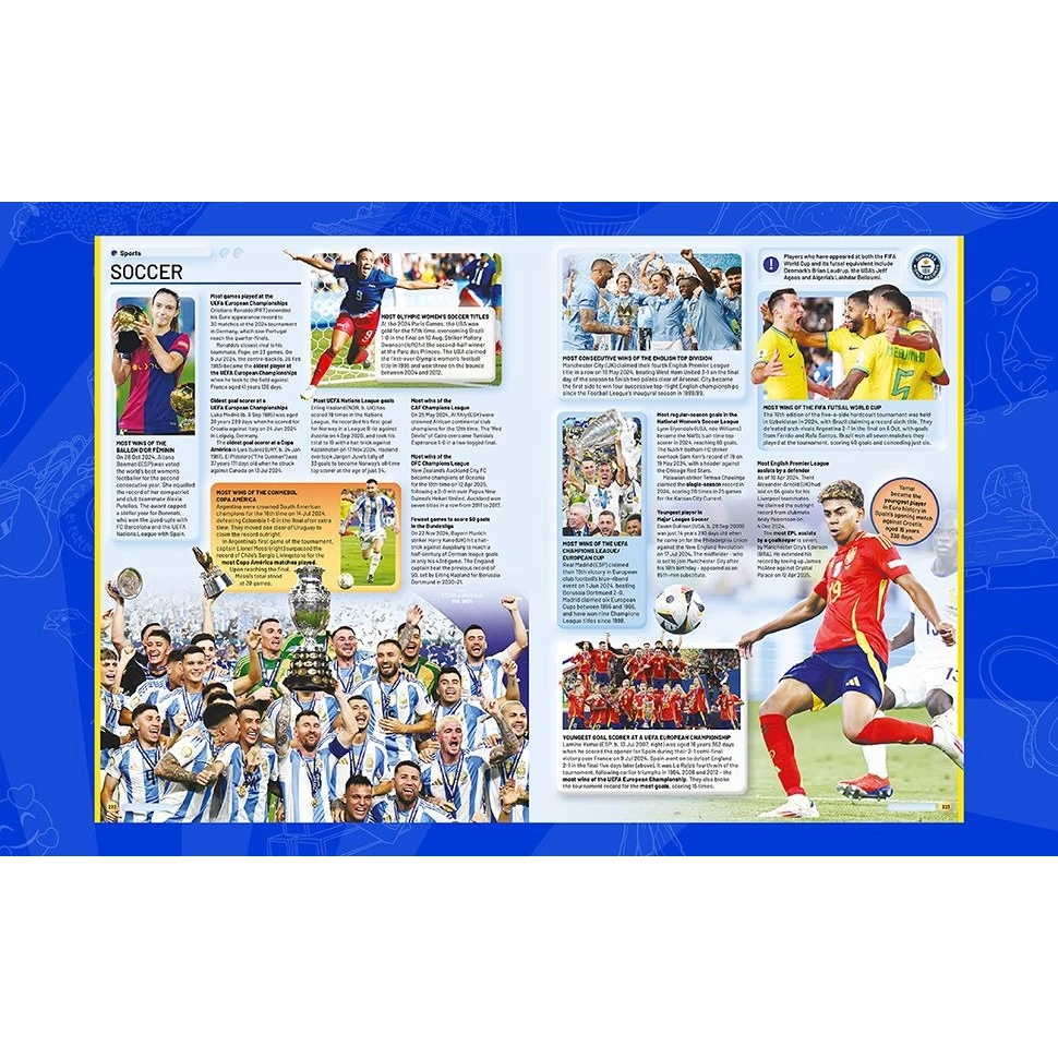 Discover the FANTASTIC FEATS: Find your inner talent with crazy collections, super strength and even pickleball Celebrate 8 NEW ICONS: from Dolly Parton to Katie Ledecky and double-amputee triathlete Billy Monger, these record-breaking superheroes will fuel up your inspiration. SCIENCESUPERLATIVES: From futuristic cities to space robots, dive into the cutting-edge discoveries that will blow your mind Meet EXTRAORDINARY HUMANS: Celebrate all the fascinating forms human greatness takes with iconic GWR titles Step into the KIDS ZONE: Uncover the latest Under-16 records and meet the Young Achievers, proving that the next generation is already crushing it. Marvel at the SPORTS STARS WHO SCORED BIG – from football GOAT Lionel Messi to WNBA star Caitlin Clark, who made headlines this year?