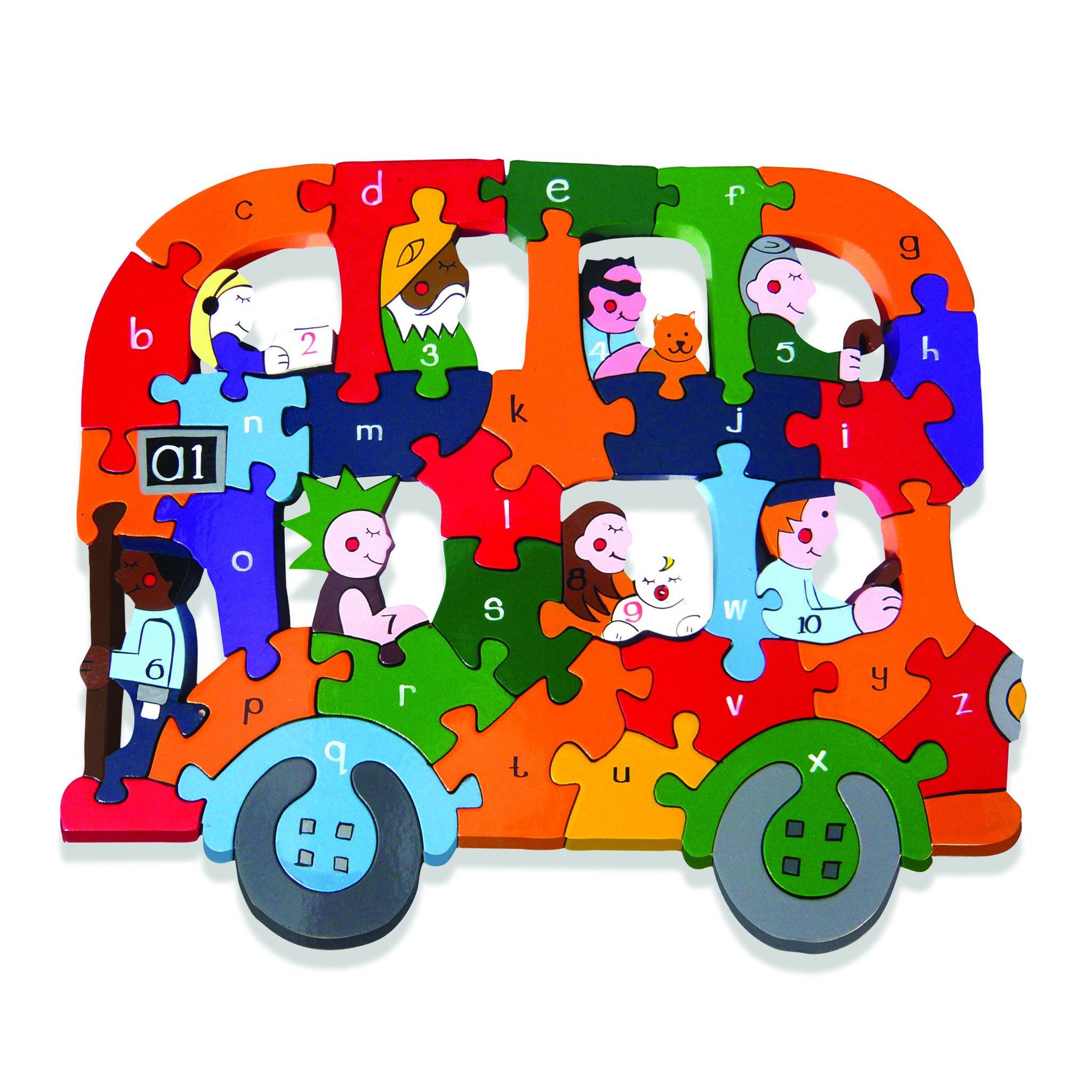 Handcrafted Alphabet Bus Wooden Jigsaw