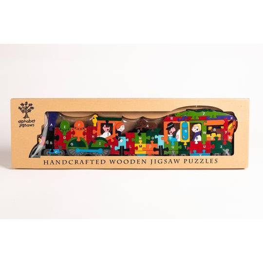 Our Alphabet Train is a beautiful wooden jigsaw puzzle that combines both letters and numbers. This colourful old fashioned steam train is lettered from A to Z and has a fine array of characters on board who are numbered from 1 to 10. Building this alphabet and numbers puzzle is a wonderful challenge that will encourage both dexterity and logic as children will need to decipher between letters and numbers.