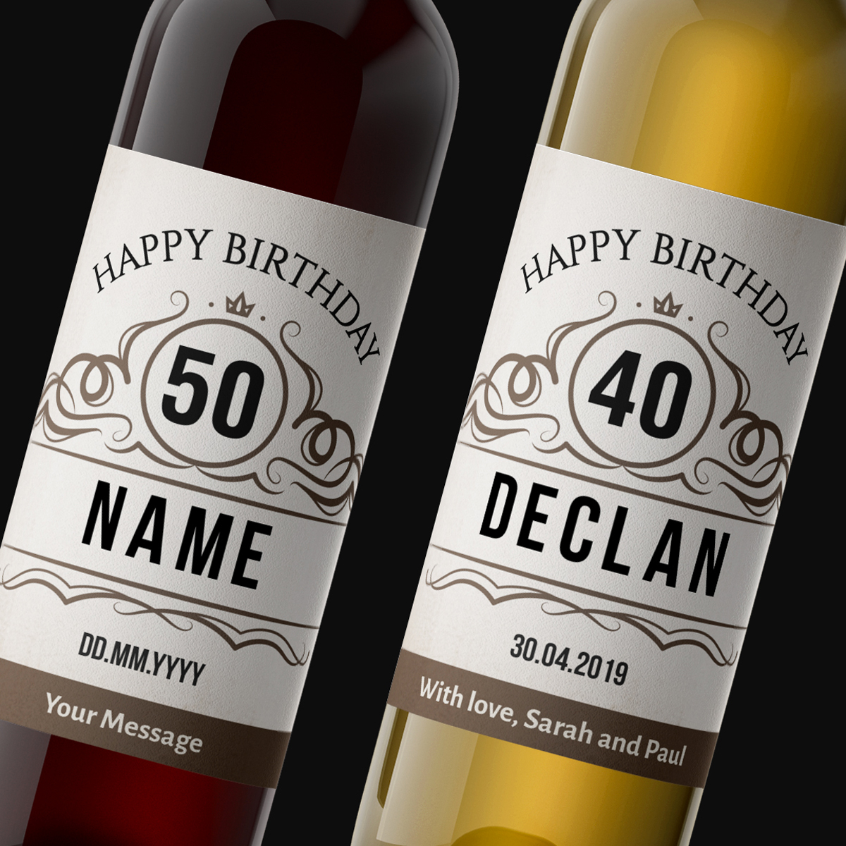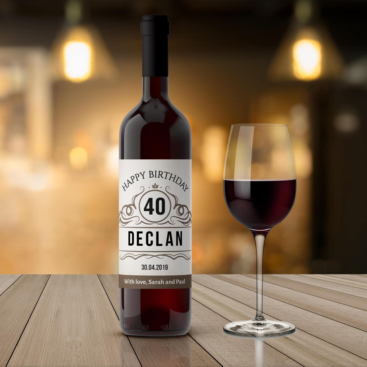This novel bottle of personalised wine is truly a great gift to celebrate and commemorate your recipient's birthday - insert any age on the label. Simply complete the details and we'll have the wine label custom printed with your personalised details.