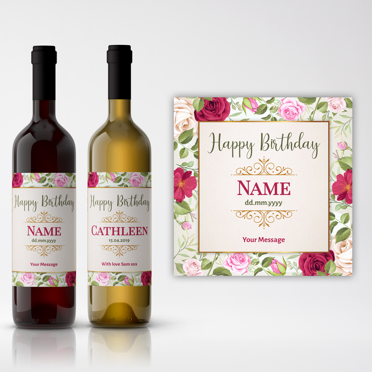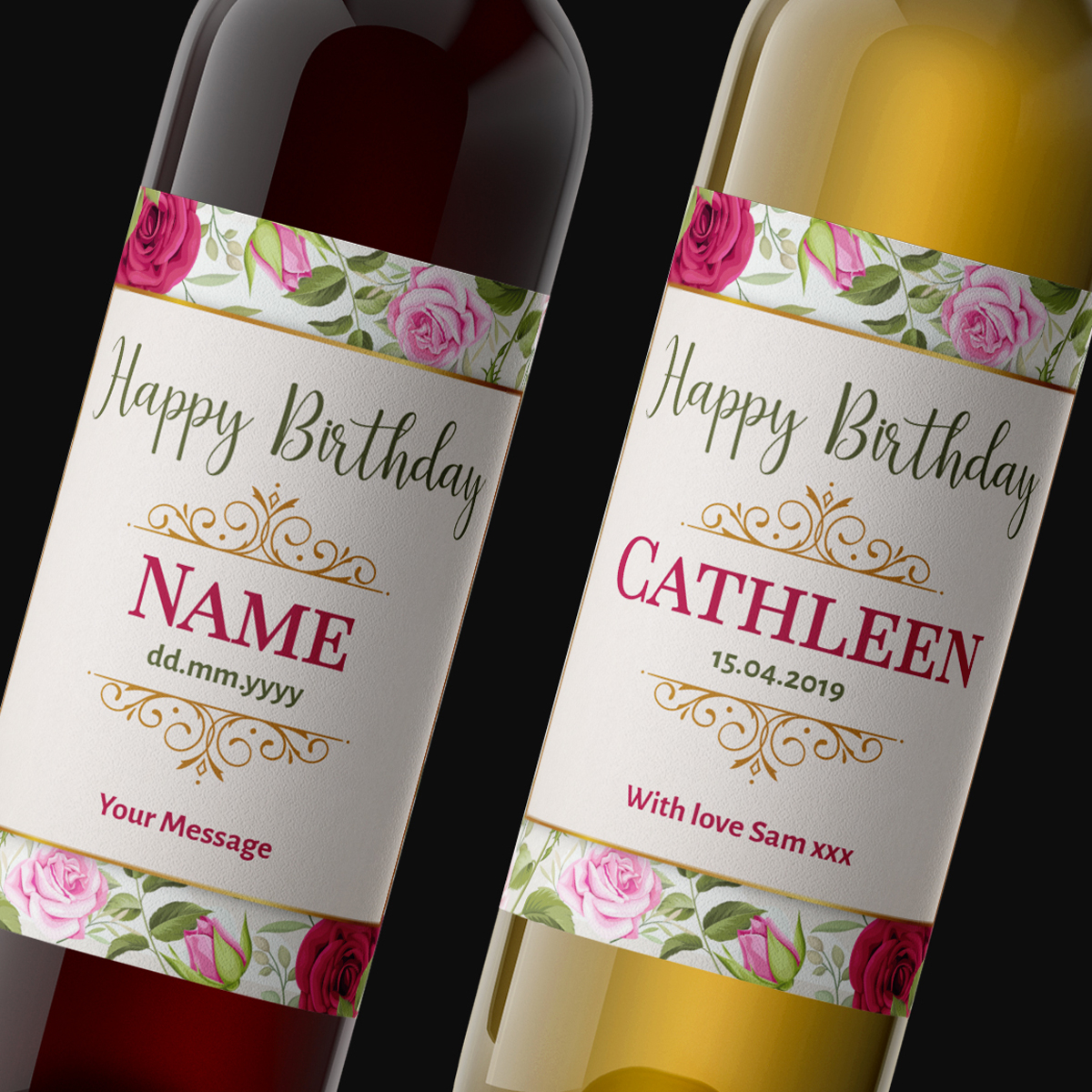 Happy Birthday Any Name Any Message Roses Personalised Wine