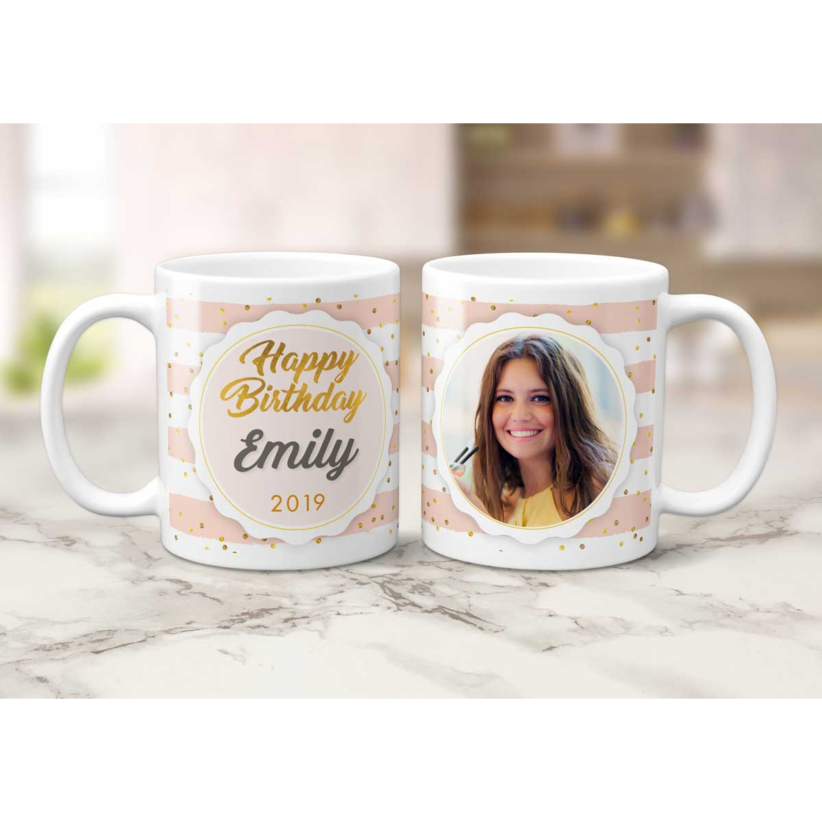 Happy Birthday Any Photo Pink Stripes Personalised Mug