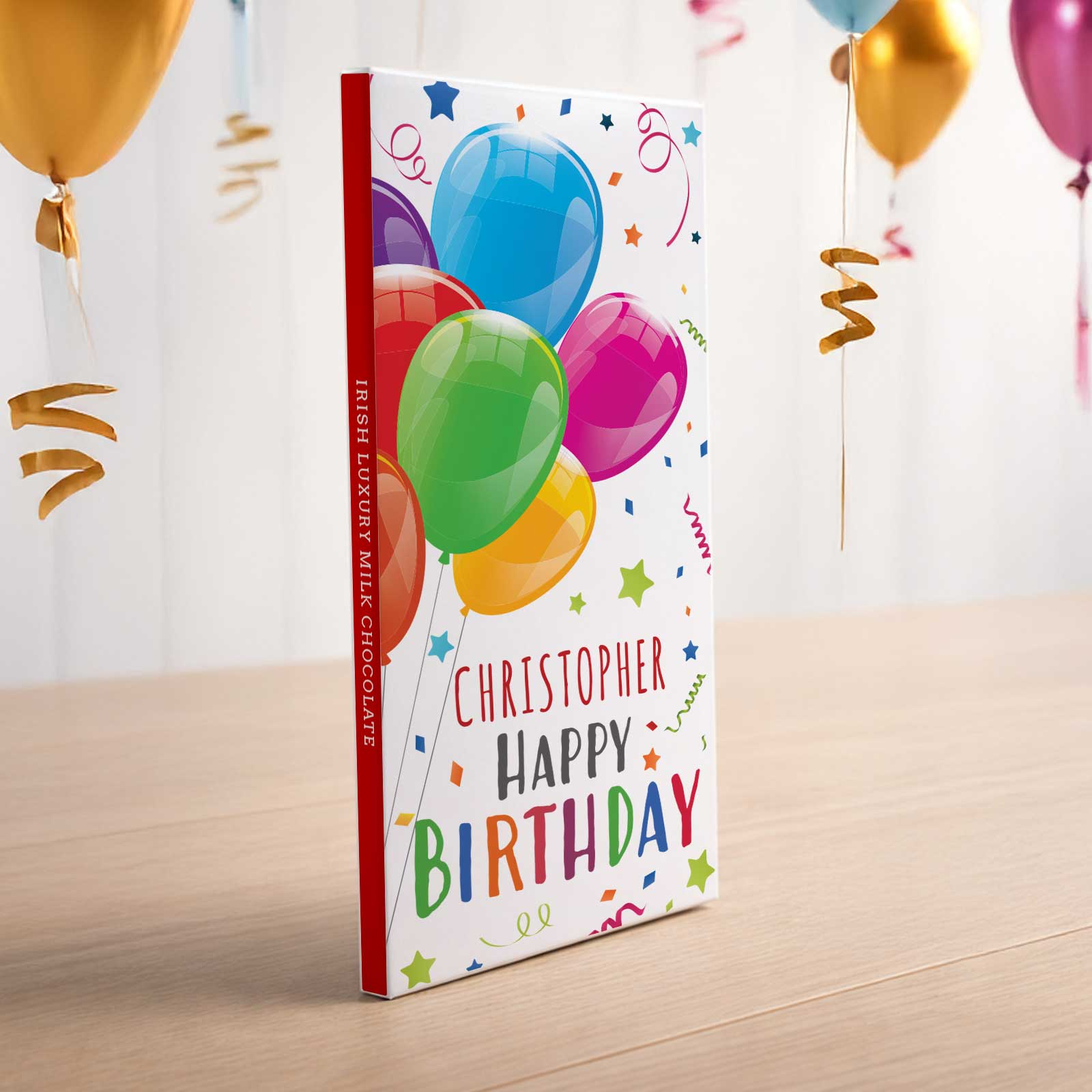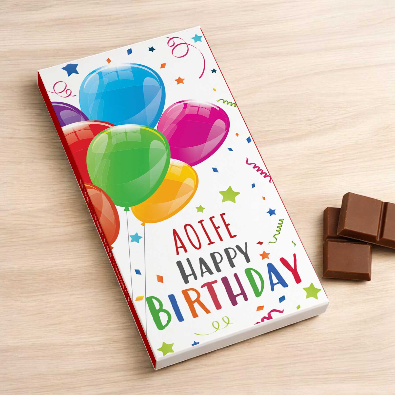 This Happy Birthday Balloons Personalised Chocolate Bar 90g is the perfect delightful gift to send your warm wishes in a delicious way. Expertly crafted in County Cork, Ireland, this milk chocolate bar combines quality and joy in every bite.