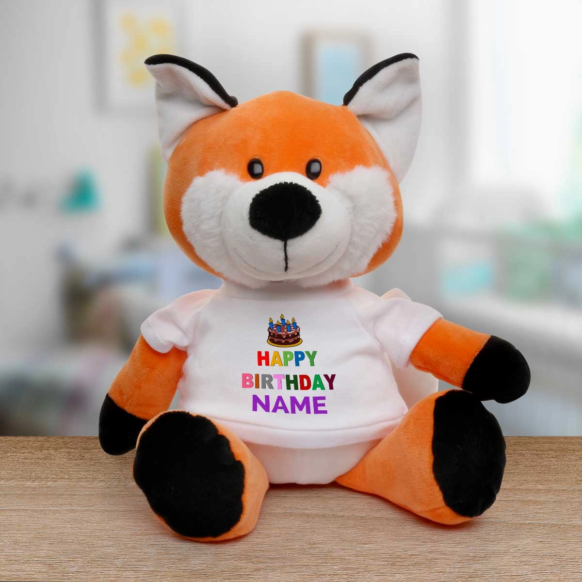 The animal's t-shirt is personalised to include your special message.