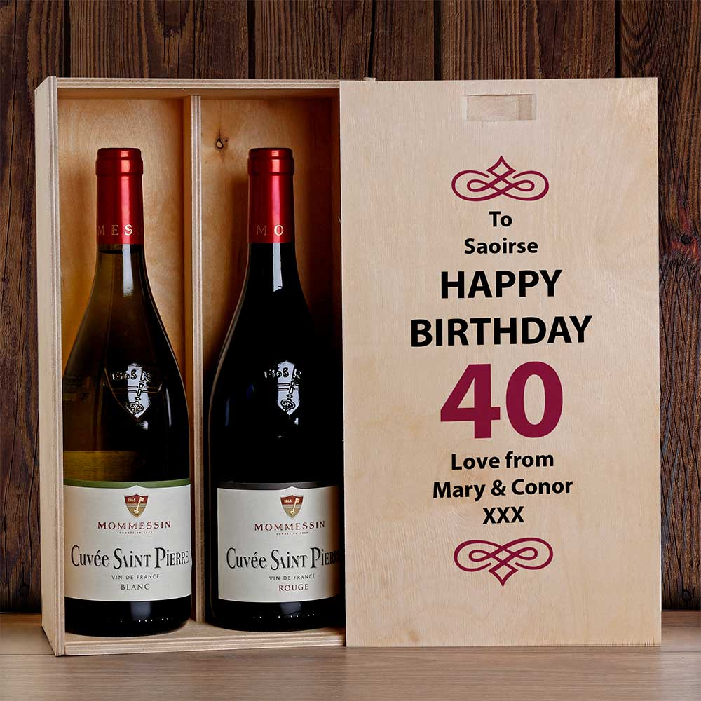 This personalised wine box with two bottles of wine makes the perfect birthday present.
