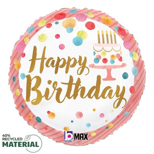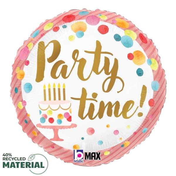 Make any birthday extra special with this bright and cheerful balloon set designed to surprise and delight. Perfect as a gift or a festive decoration, this 18-inch inflated balloon features vibrant pink and multicoloured confetti patterns with elegant gold lettering that reads "Happy Birthday" on one side and "Party Time!" on the other.