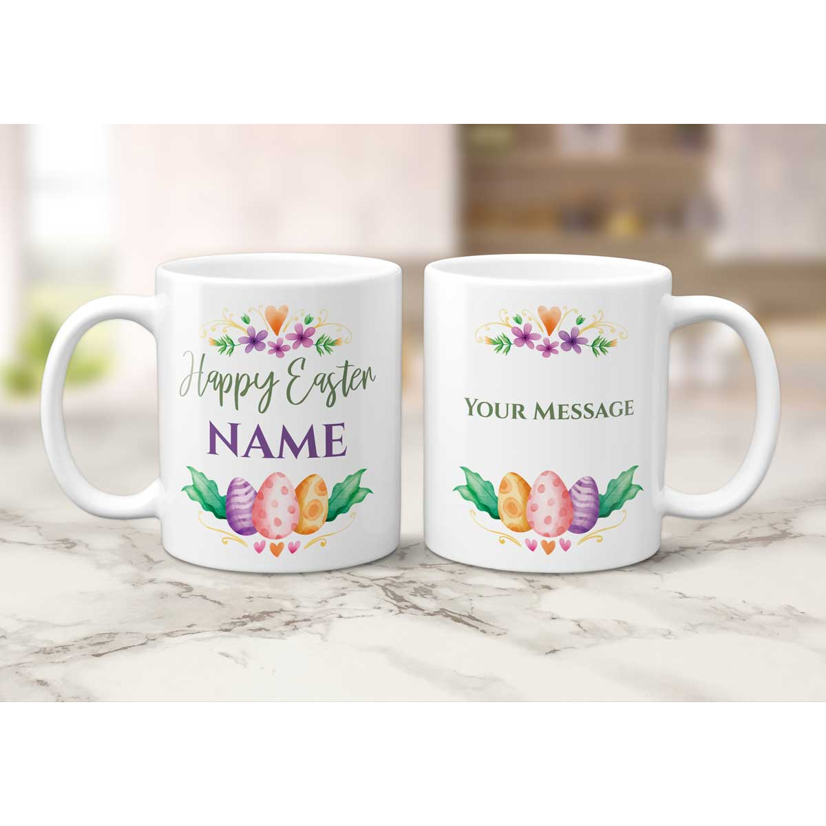 Happy Easter Any Name And Message Eggs And Flowers - Personalised Mug