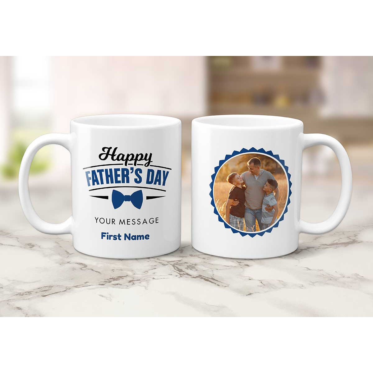 The mug is personalised with your photo and message as illustrated.