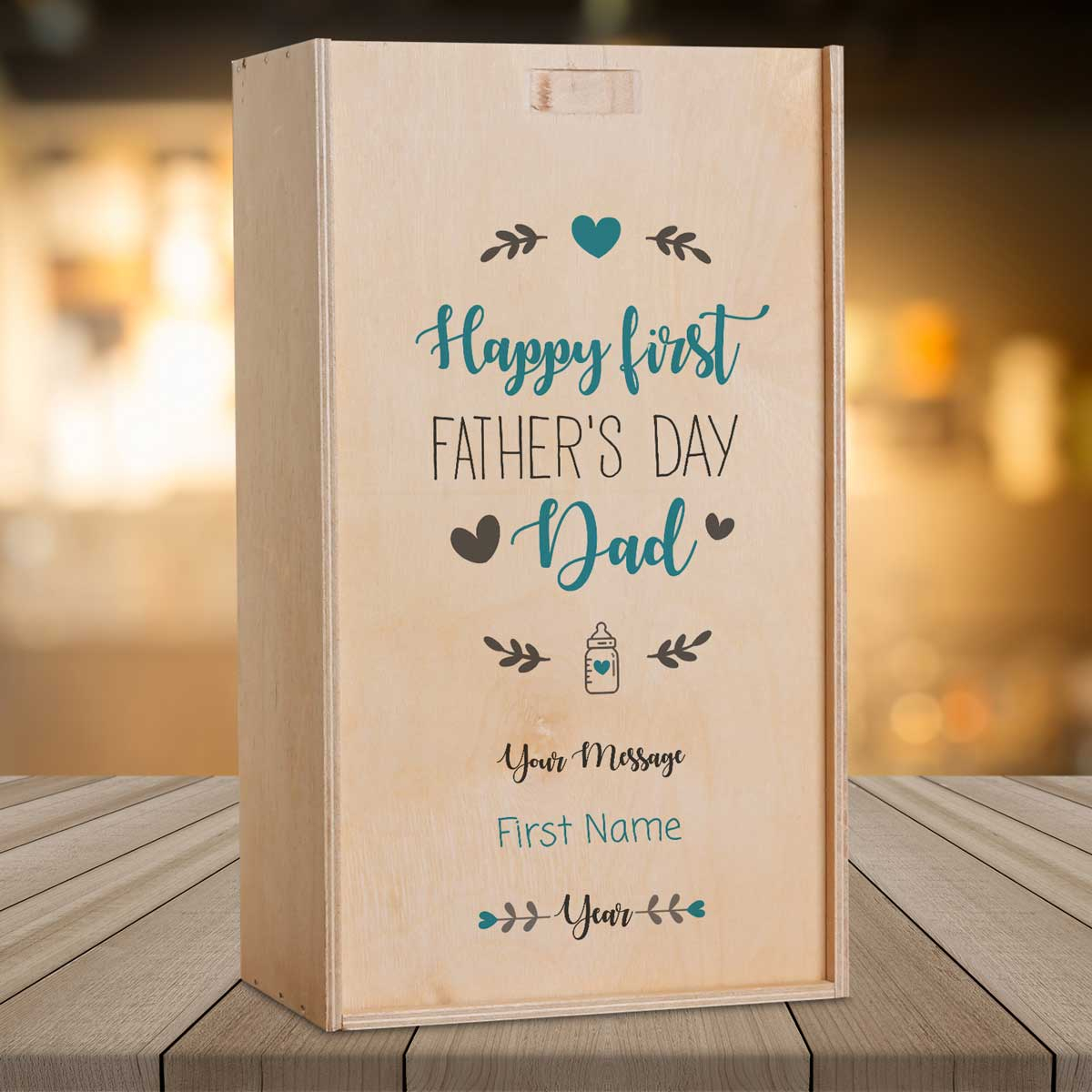 This personalised wine box with two bottles of wine makes the perfect first Father's Day gift.