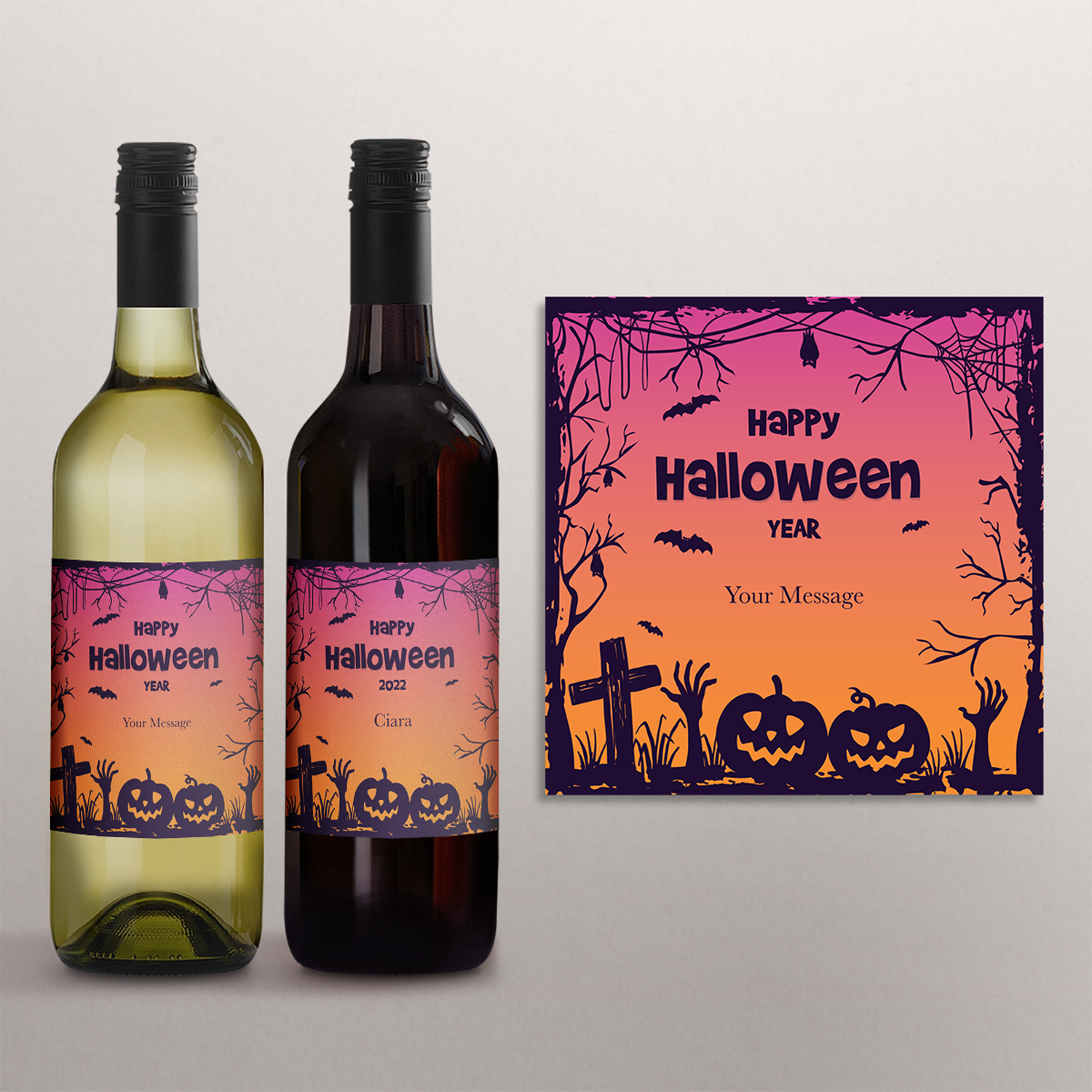 Halloween Wine Bottle Labels are personalised as illustrated, perfect for halloween party decoration.