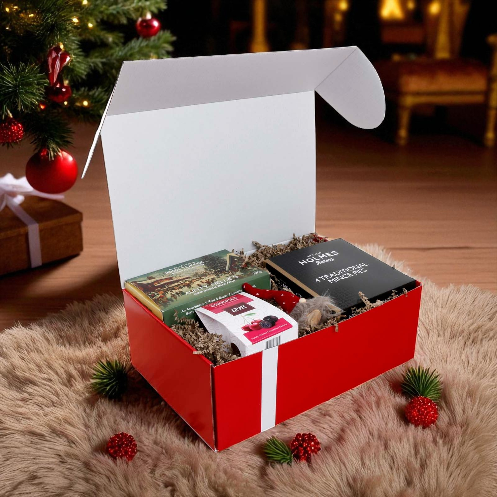 The hamper is presented in our new red gift box. Stylish and reusable, the gift box is packed inside a separate shipping box for secure transport.