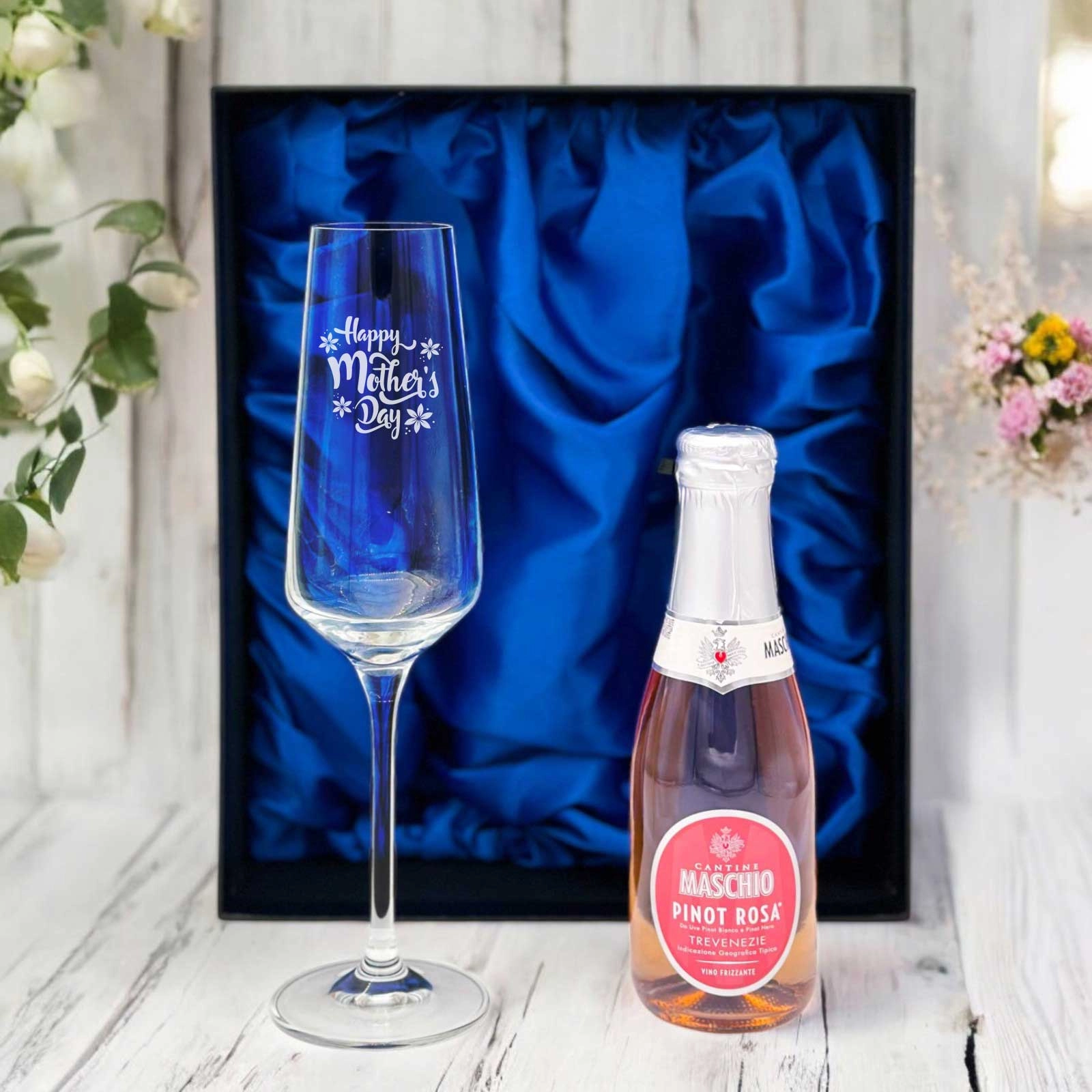 Toast to a Happy Mother's Day with our Personalised Crystal Flute, accompanied by a Snipe Bottle in a Gift Box.