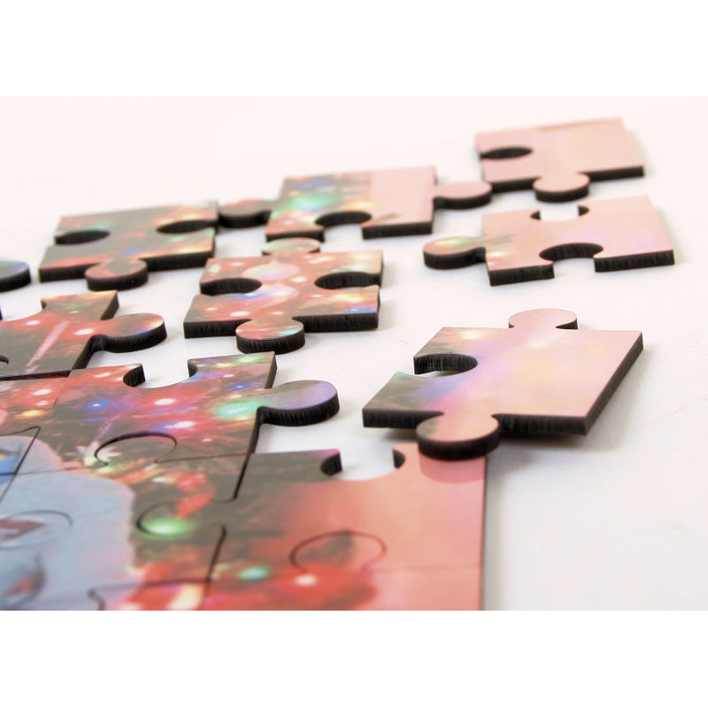 We personalise our high-gloss wooden-back jigsaws with a message of your choice along with the photo you email in.