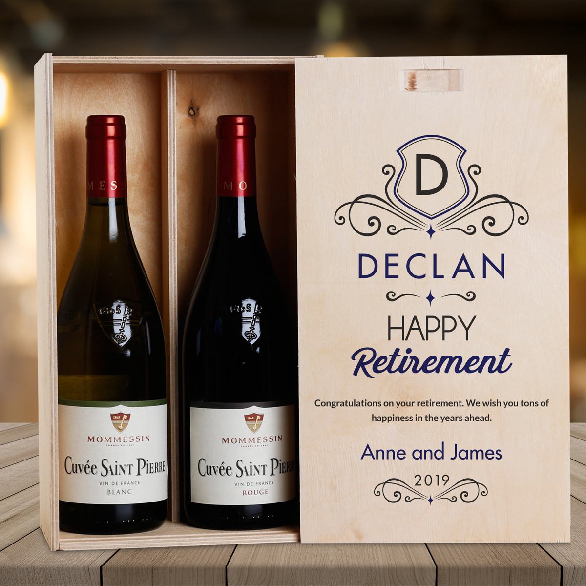This personalised wine box with two bottles of wine makes the perfect retirement gift.