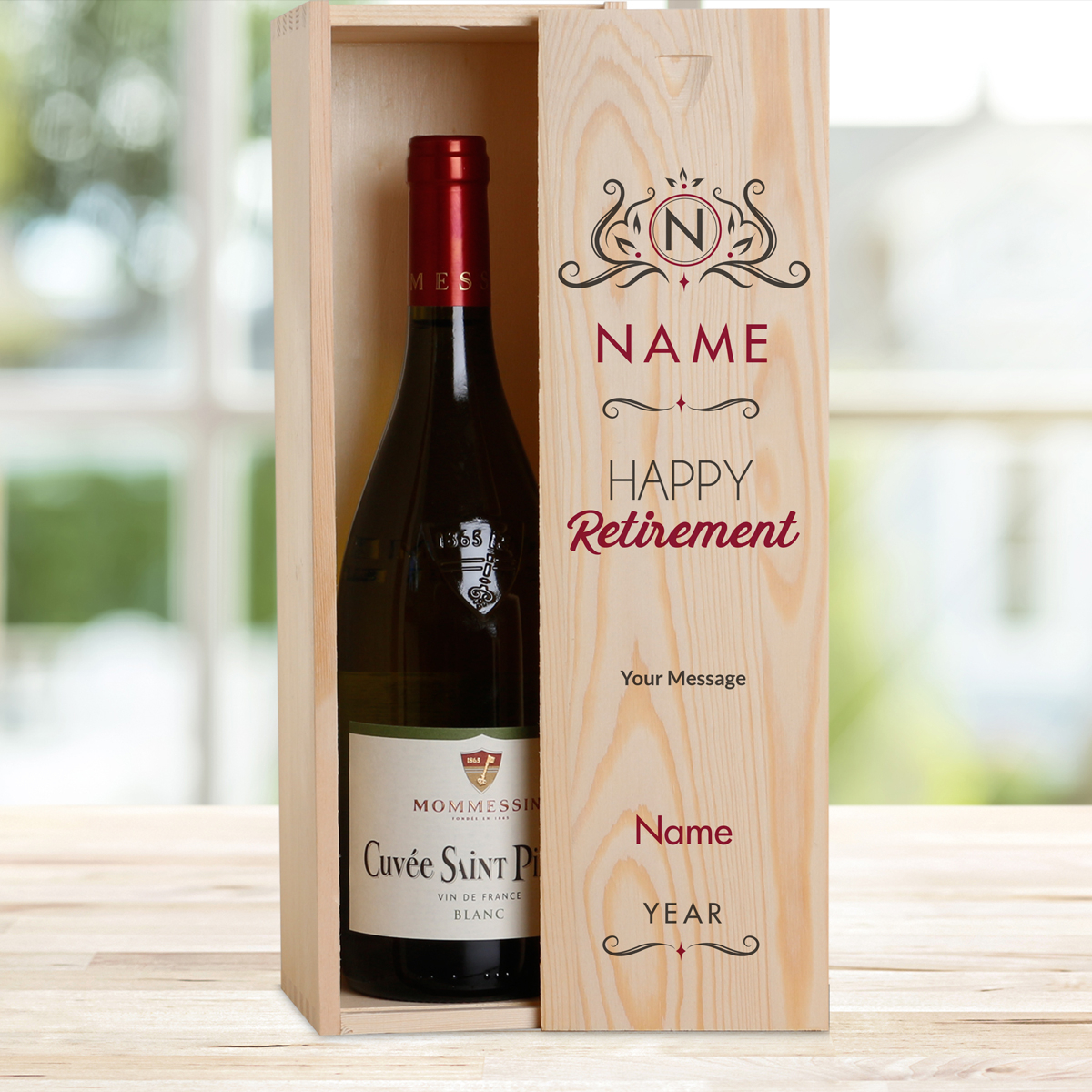 This personalised wine box with a bottle of wine makes the perfect retirement gift.