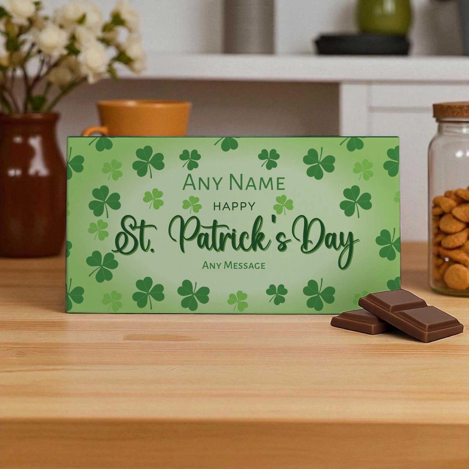 Whether you’re surprising a loved one, saying thank you to a colleague, or sending a thoughtful message across the miles, this personalised St. Patrick’s Day chocolate bar is a sweet and thoughtful way to brighten their day. The tailored message adds a personal touch, making it a cherished keepsake as well as a delicious treat.