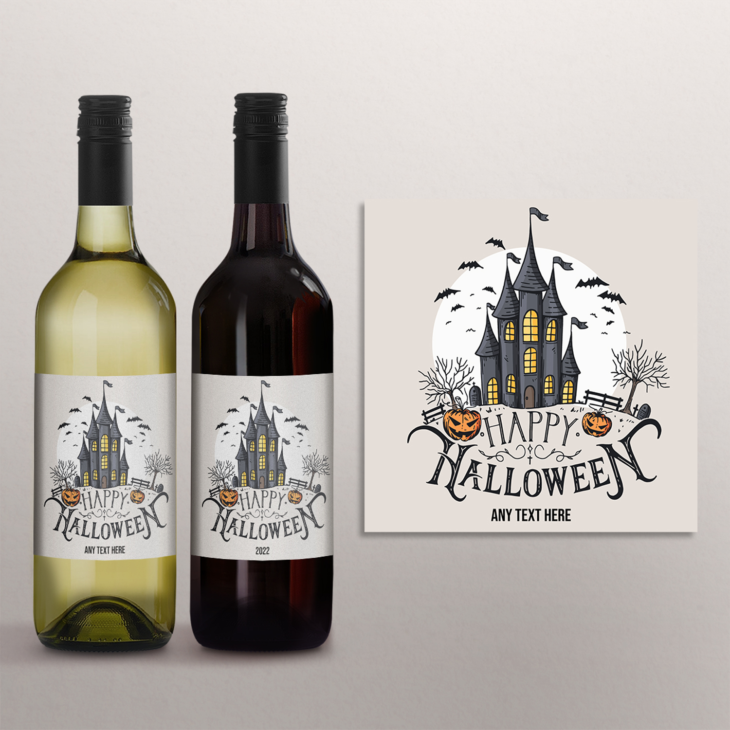 Halloween Wine Bottle Labels are personalised as illustrated, perfect for halloween party decoration.