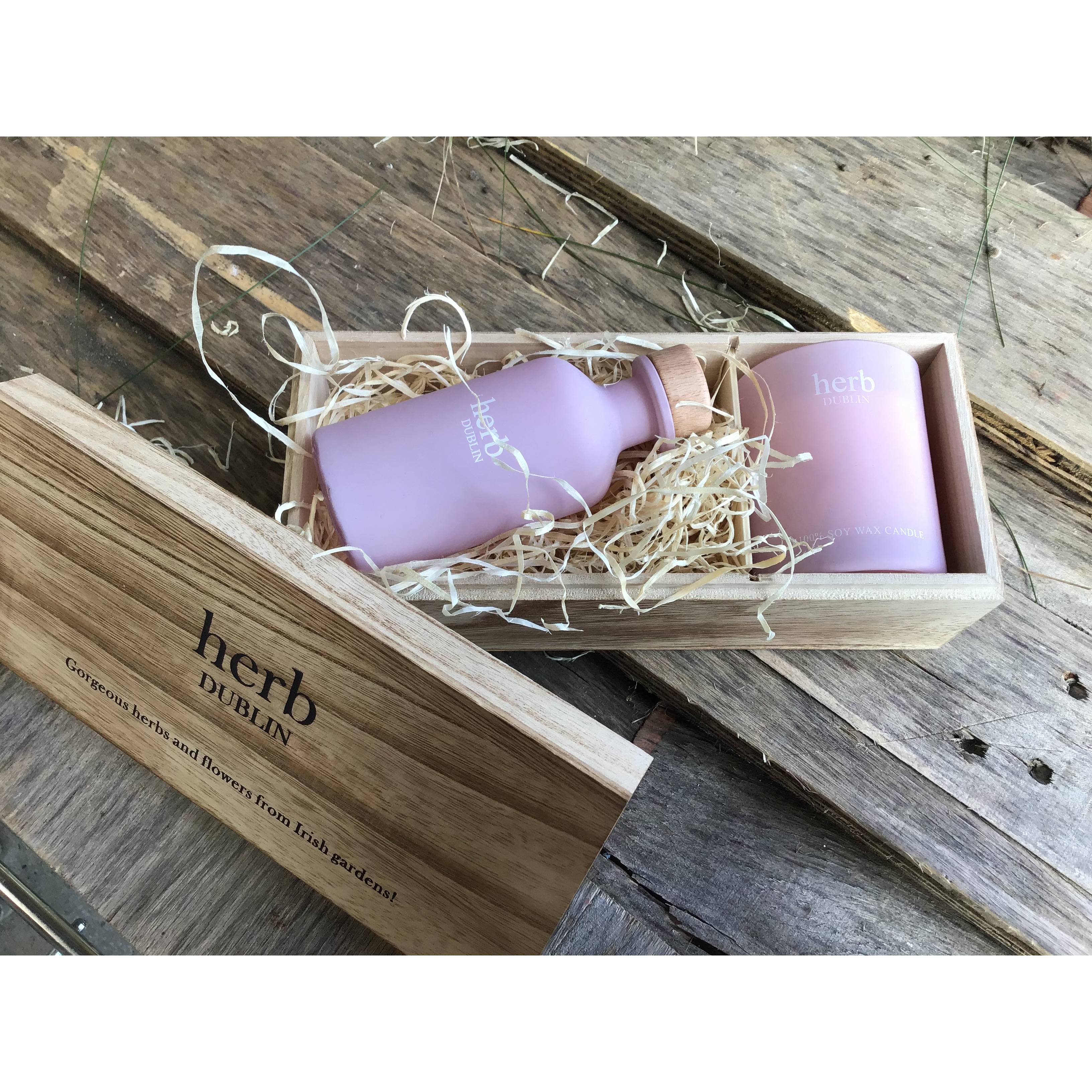 This Rhubarb candle & diffuser set from Herb Dublin comes beautifully presented in a keepsake wooden gift box.