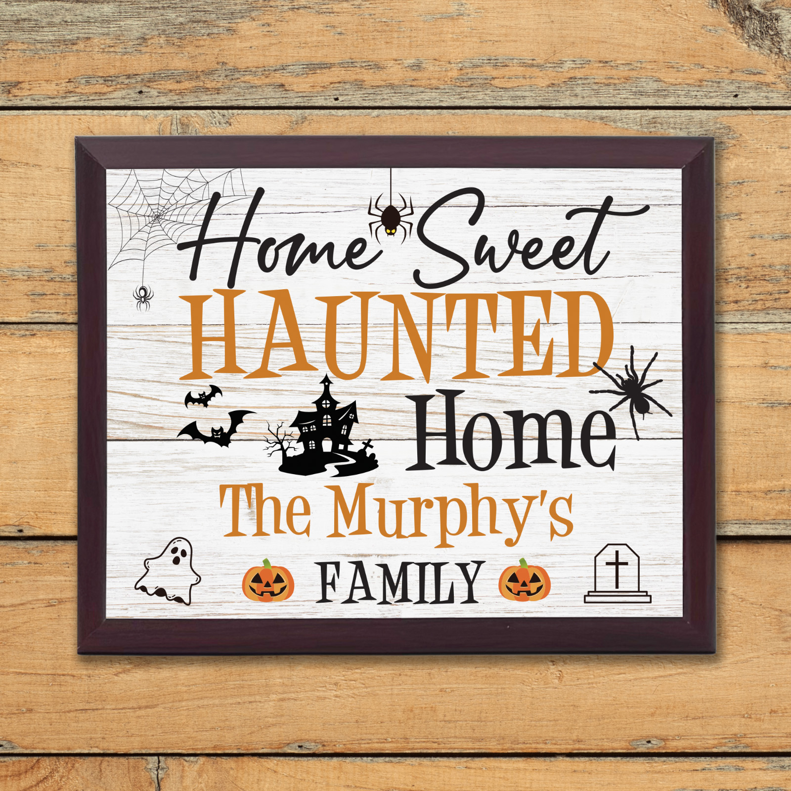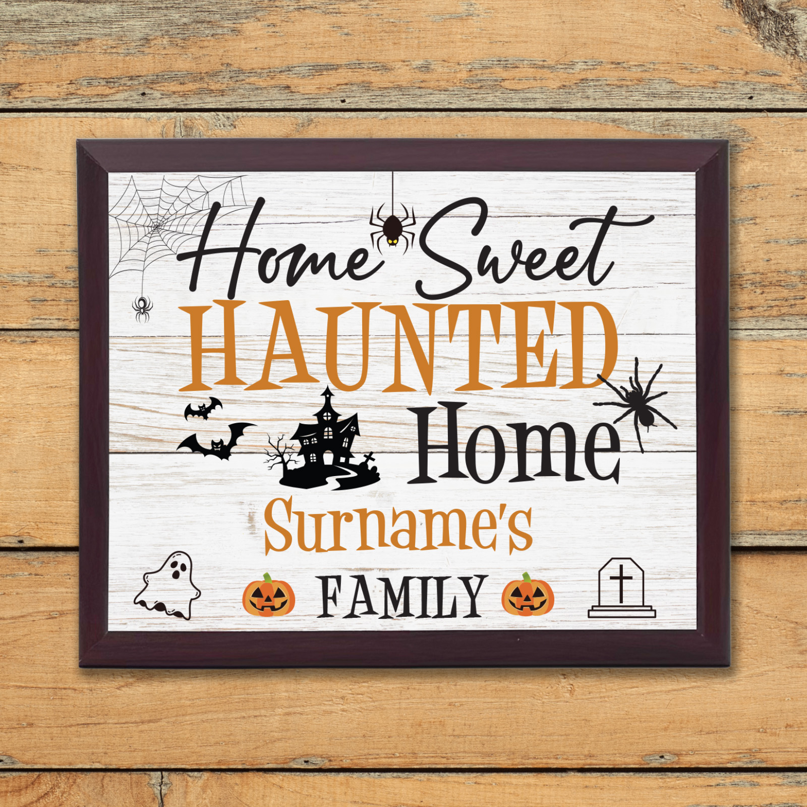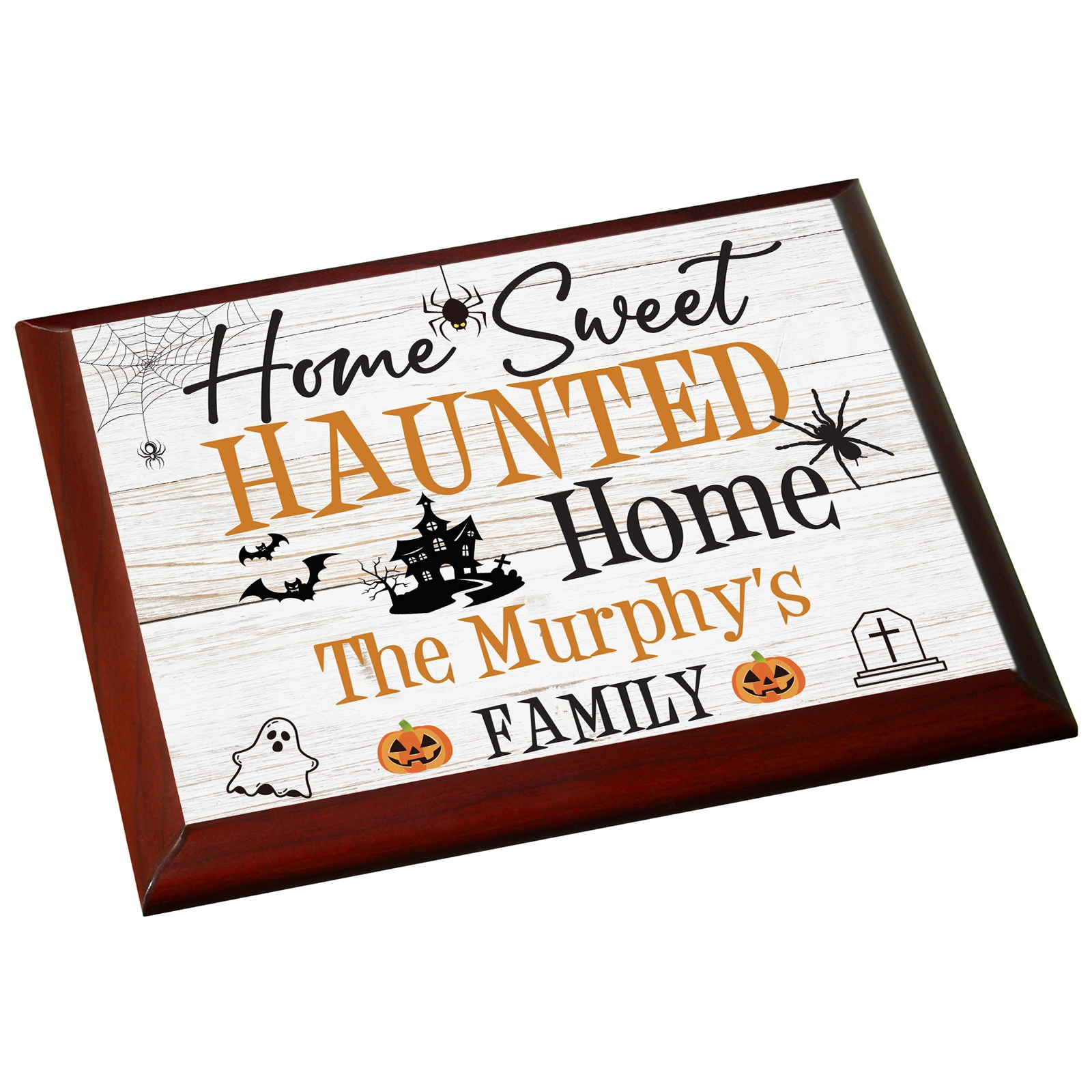 Introducing the "Home Sweet Haunted Home" Personalised Plaque Sign – a spooktacular Halloween gift!