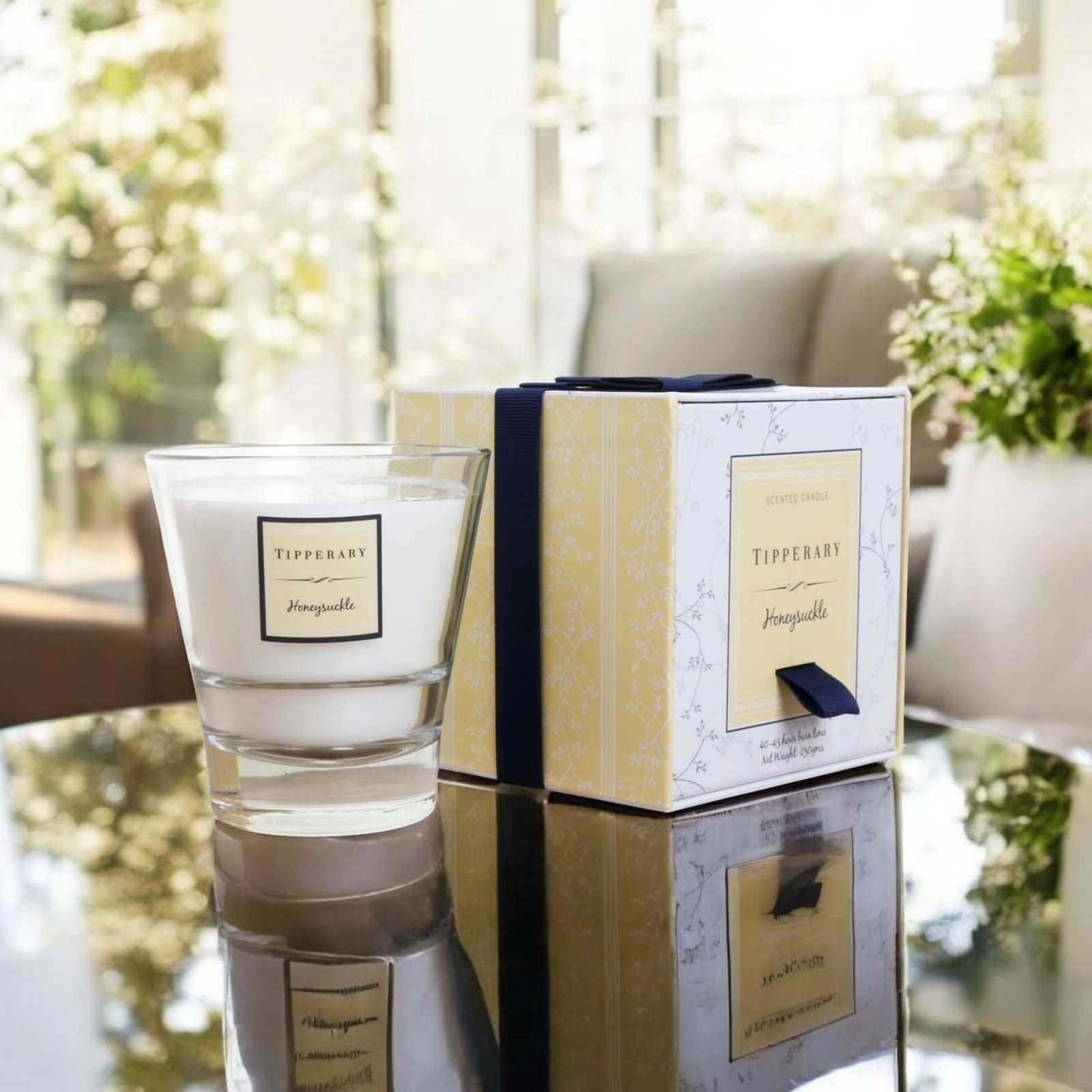 Luxurious Filled Tumbler Glass from Tipperay Crystal. Hand poured and hand finished in Ireland using a natural blend of wax and a lead free cotton braided wick to ensure a clean, toxin free burn in your home. Each fragrance is made using the essence of essential oils and has a minimum of 40 hours burn time. Presented in a Tipperary Crystal gift box.